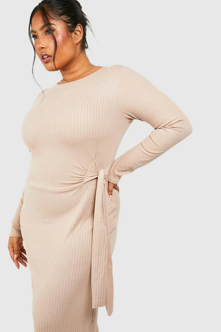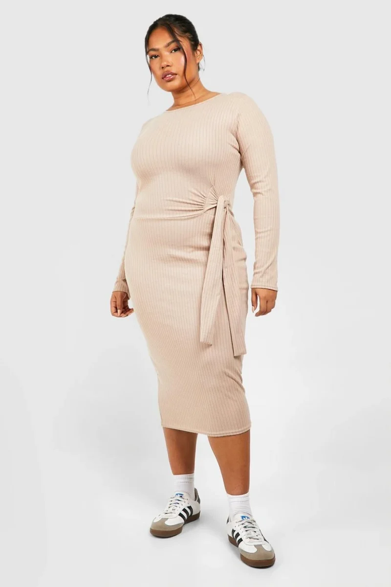BOOHOO Plus Wide Rib Tie Midi Dress