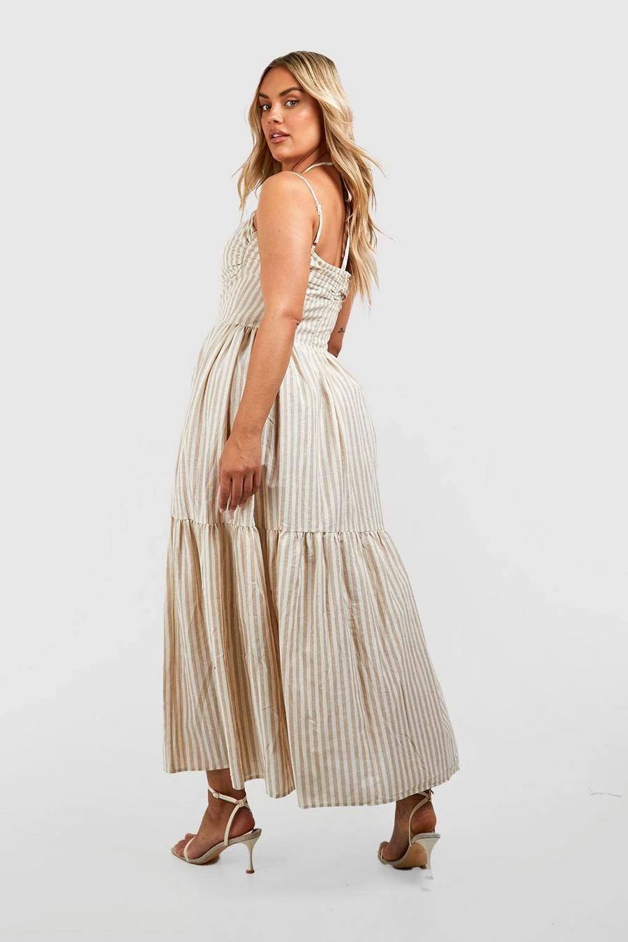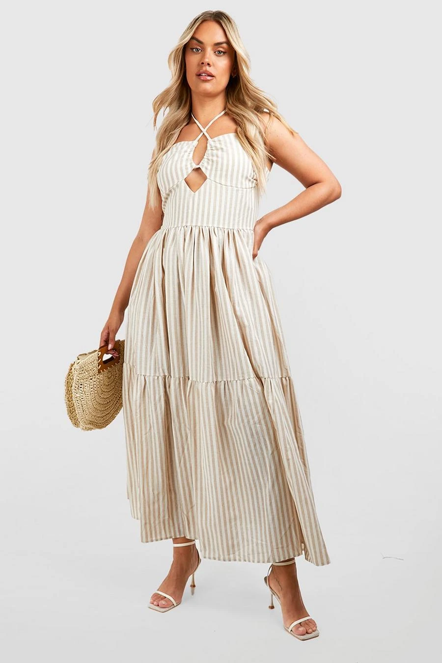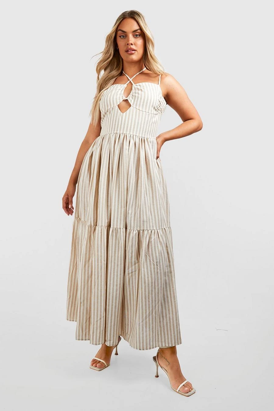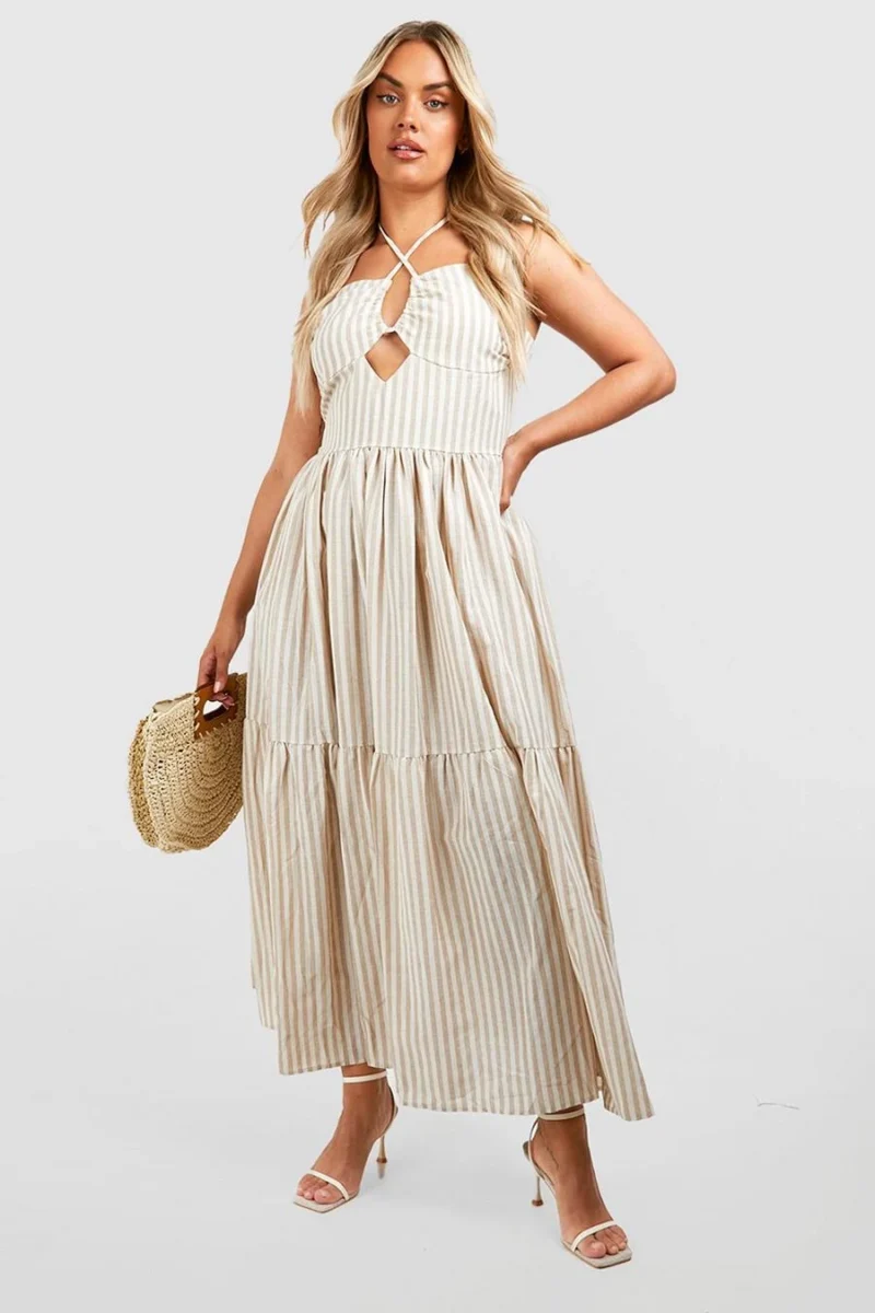 BOOHOO Plus Woven Halterneck Stripe Maxi Dress