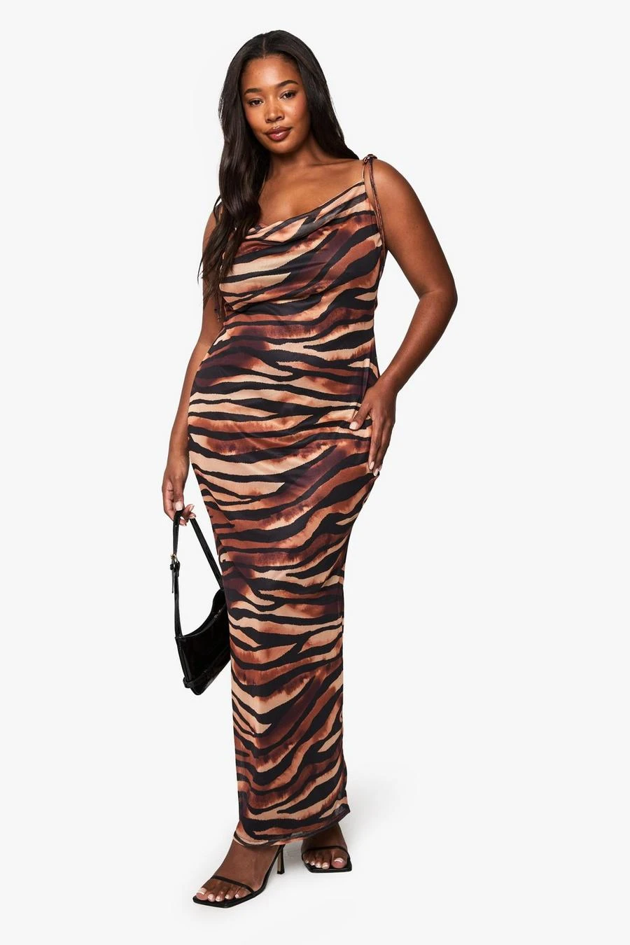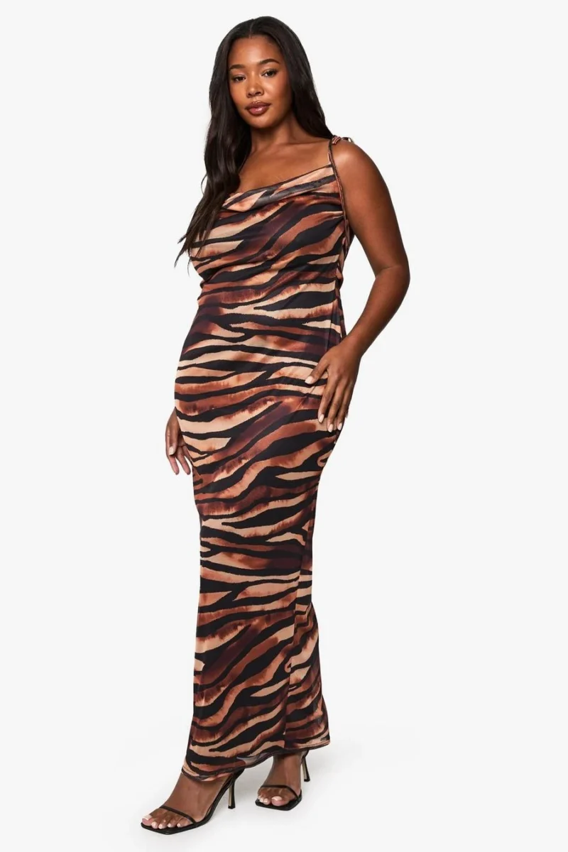 BOOHOO Plus Zebra Print Cowl Neck Maxi Dress
