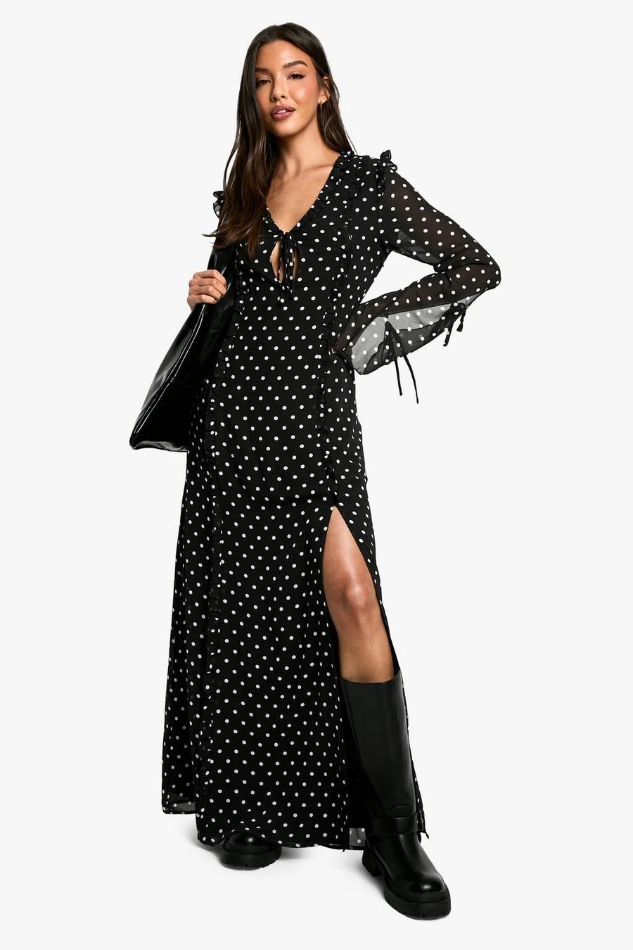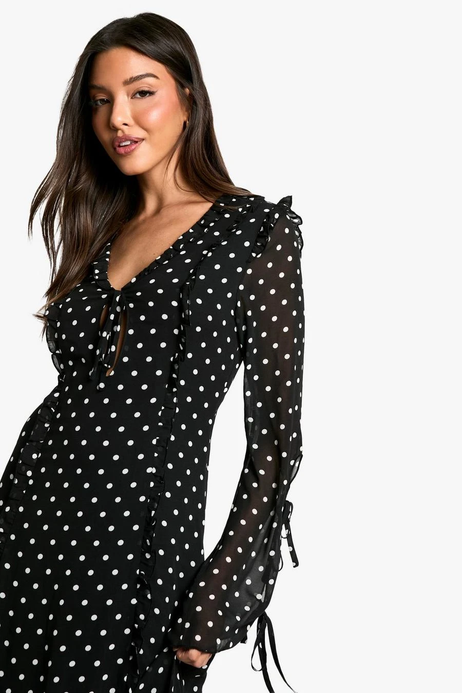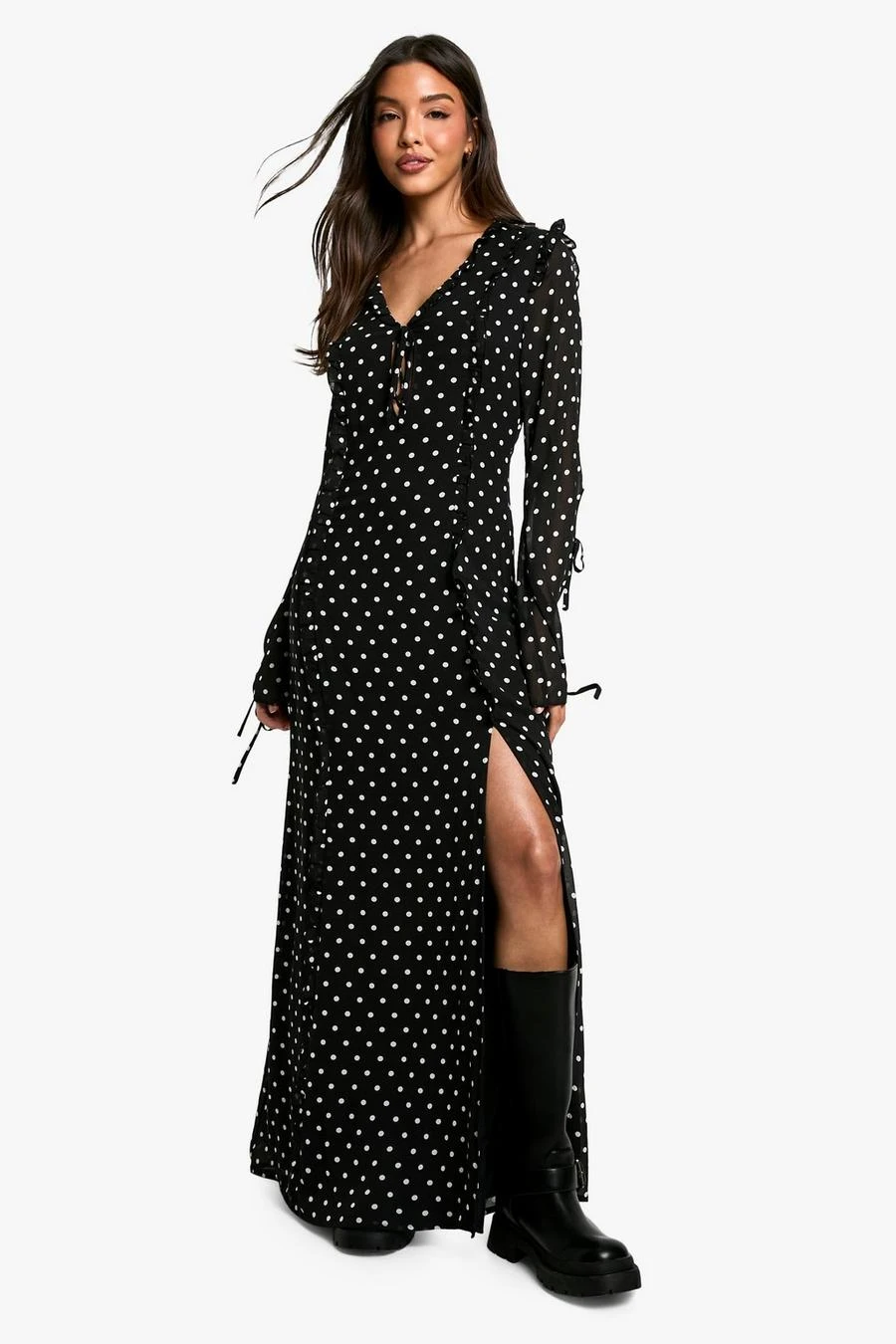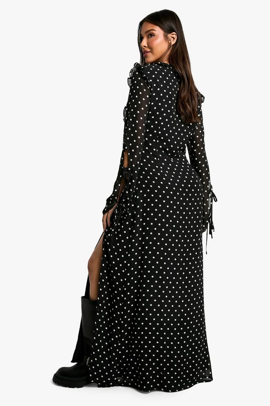 BOOHOO Polka Dot Chiffon Flare Sleeve Maxi Dress