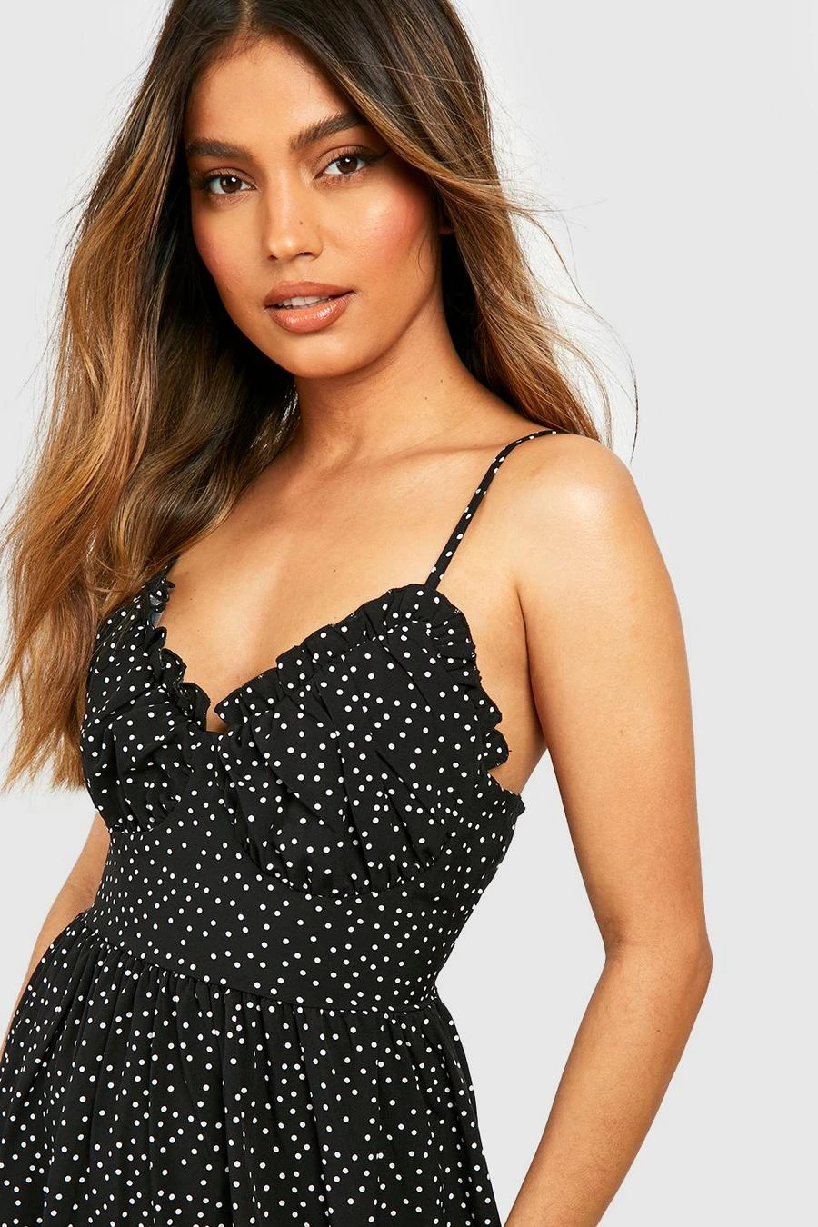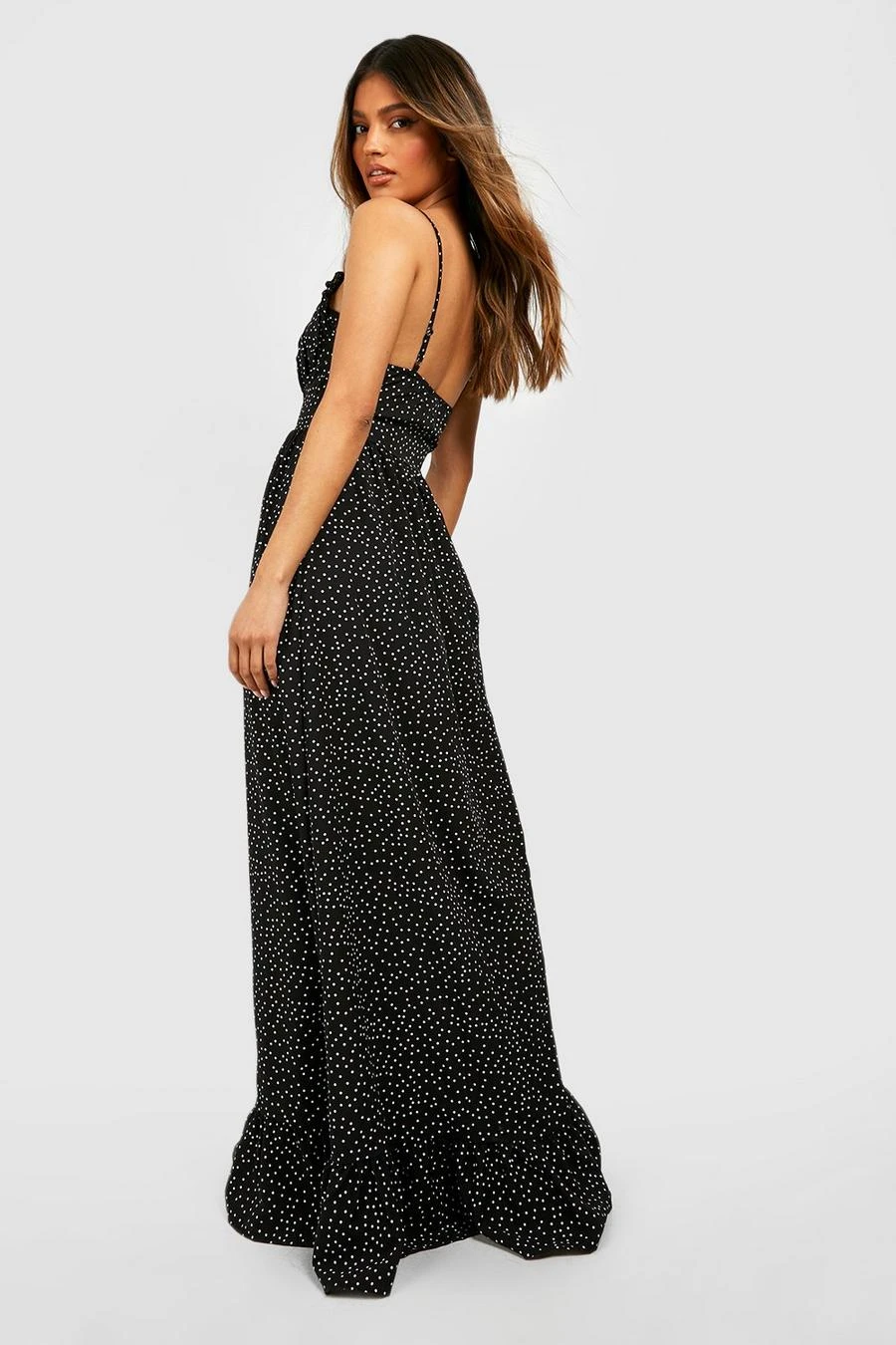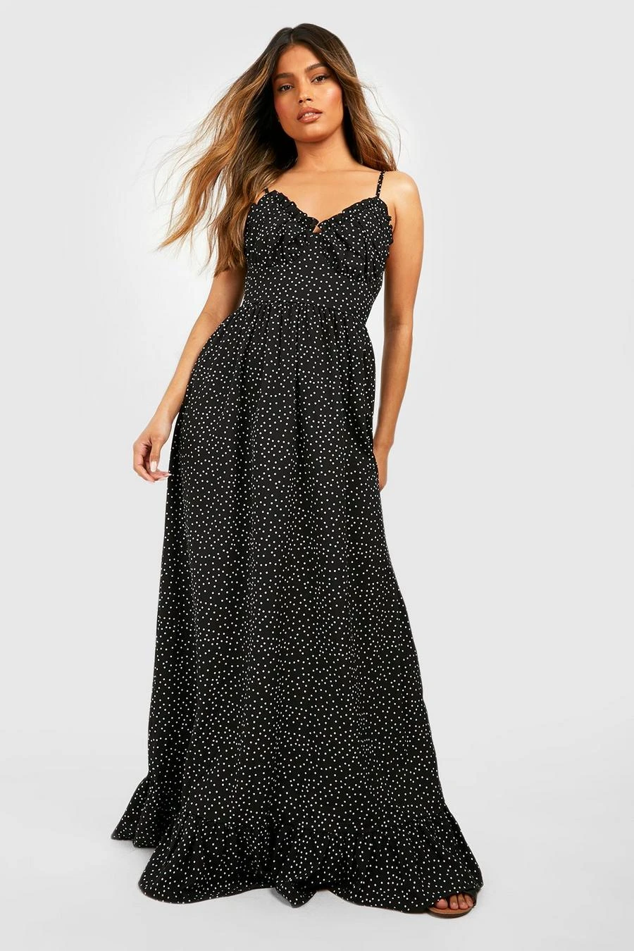BOOHOO Polka Dot Ruched Bust Frill Hem Maxi Dress
