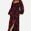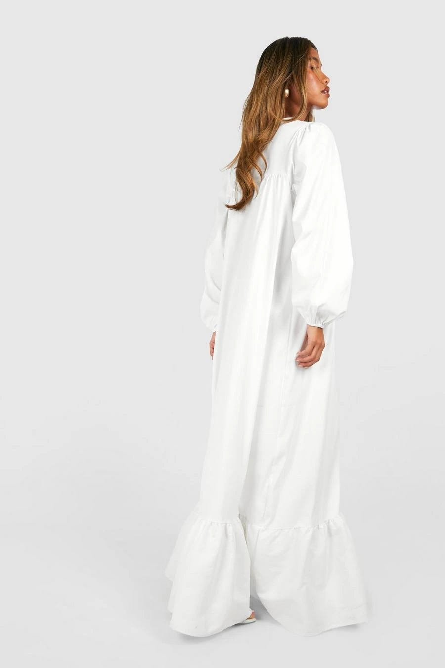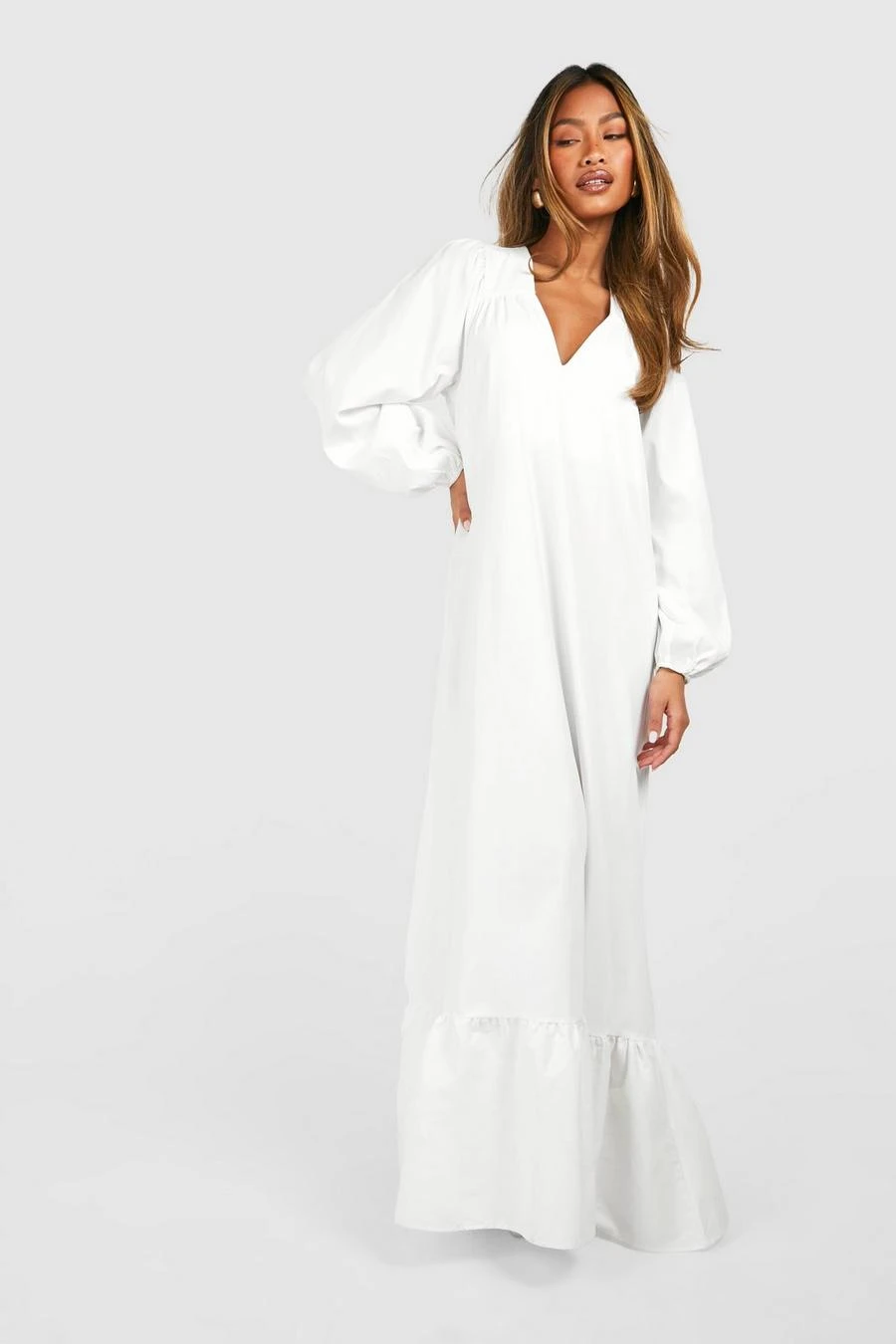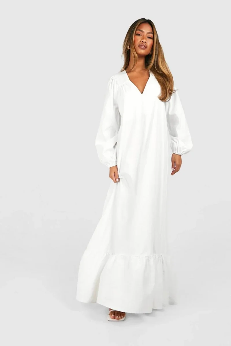 BOOHOO Poplin Blouson Sleeve Trapeze Maxi Dress