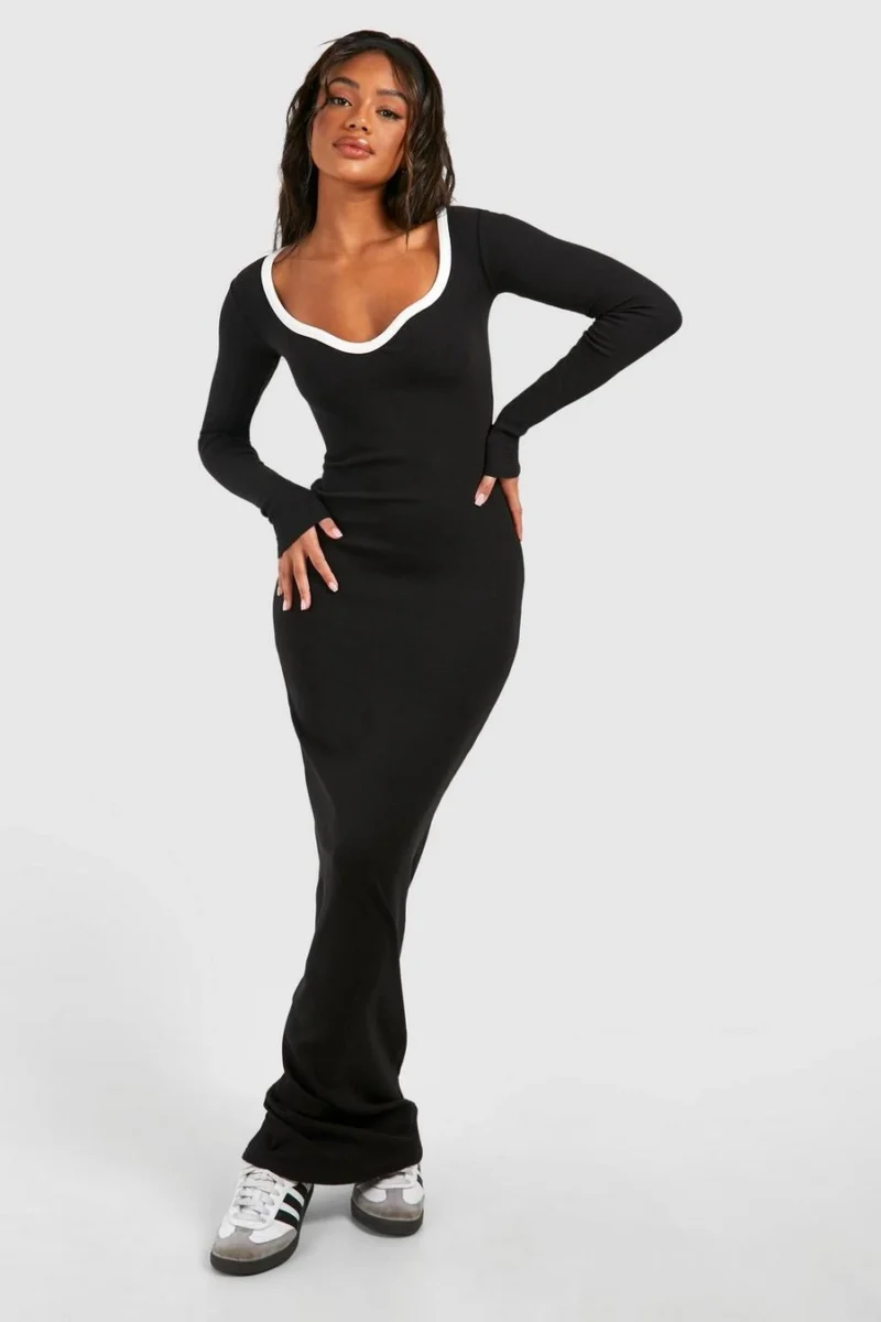 BOOHOO Premium Contrast Binding Notch Detail Maxi Dress