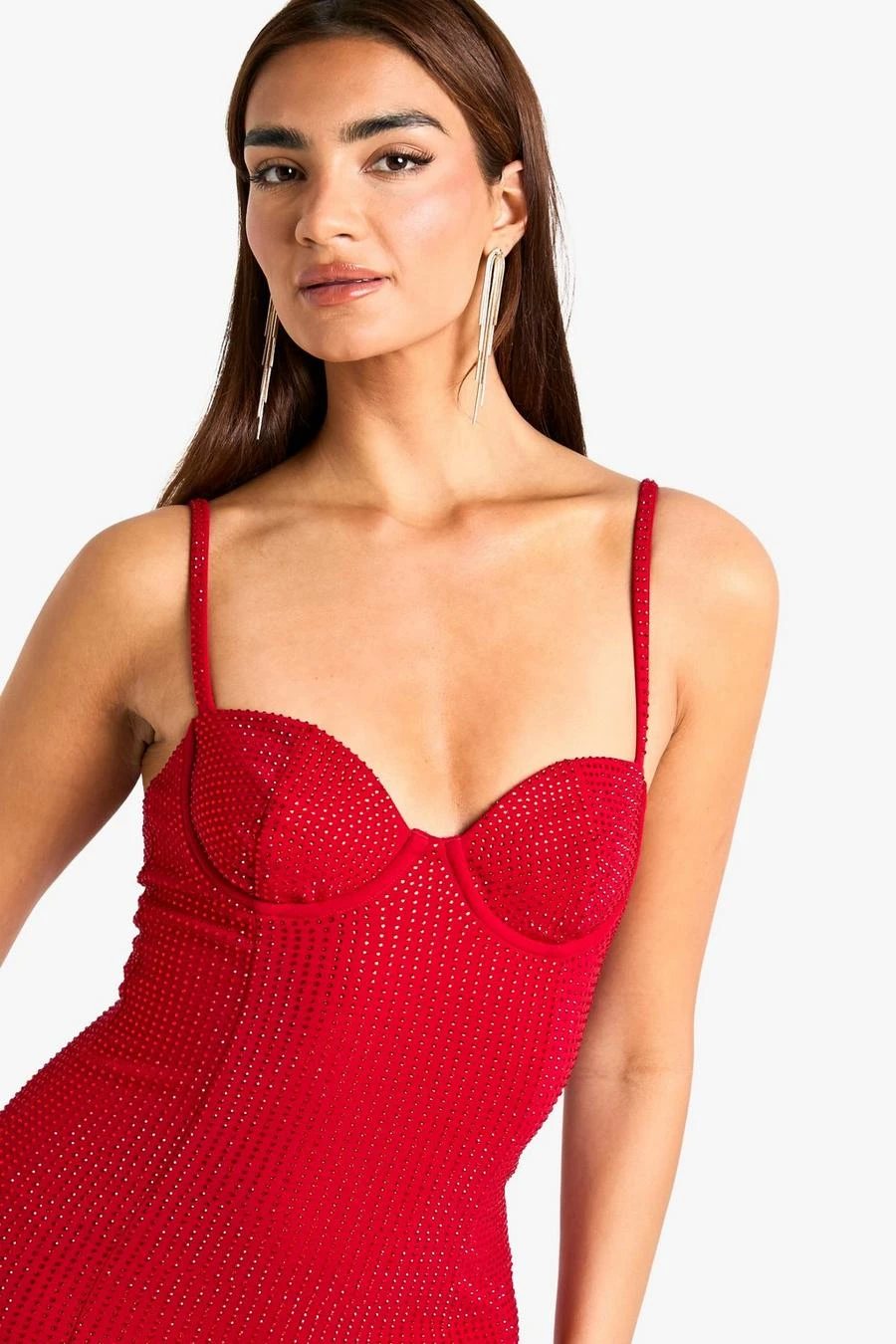 BOOHOO Premium Hot Fix Corset Maxi Dress