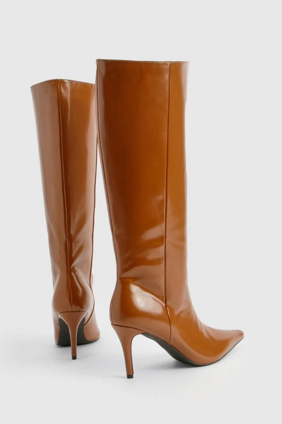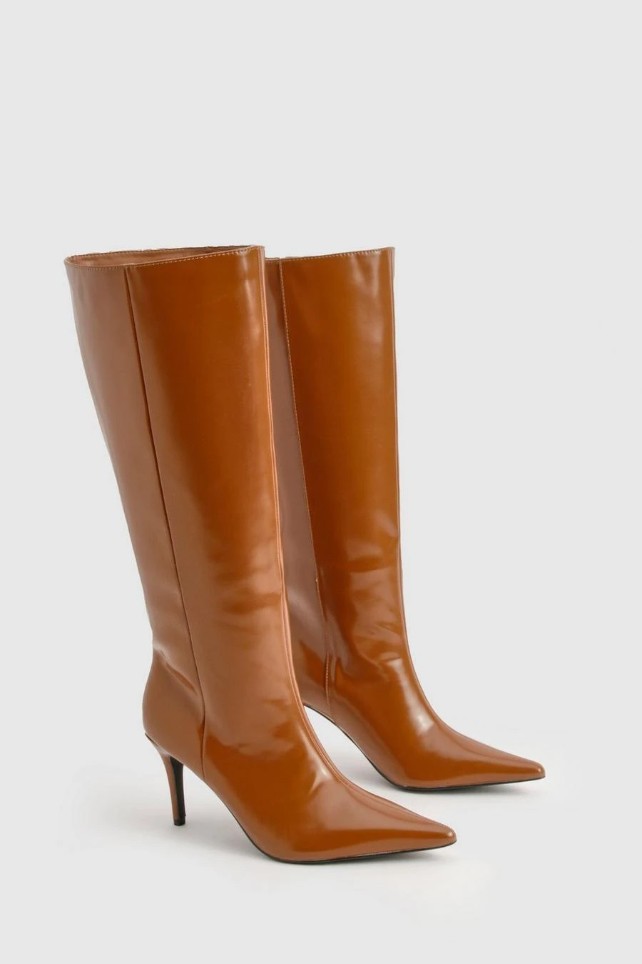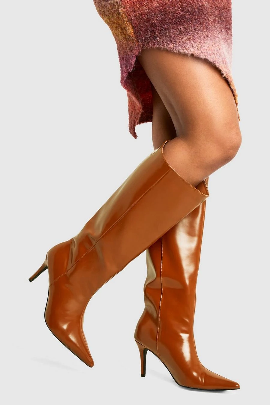 BOOHOO Premium Leather Look Pointed Knee High Boots