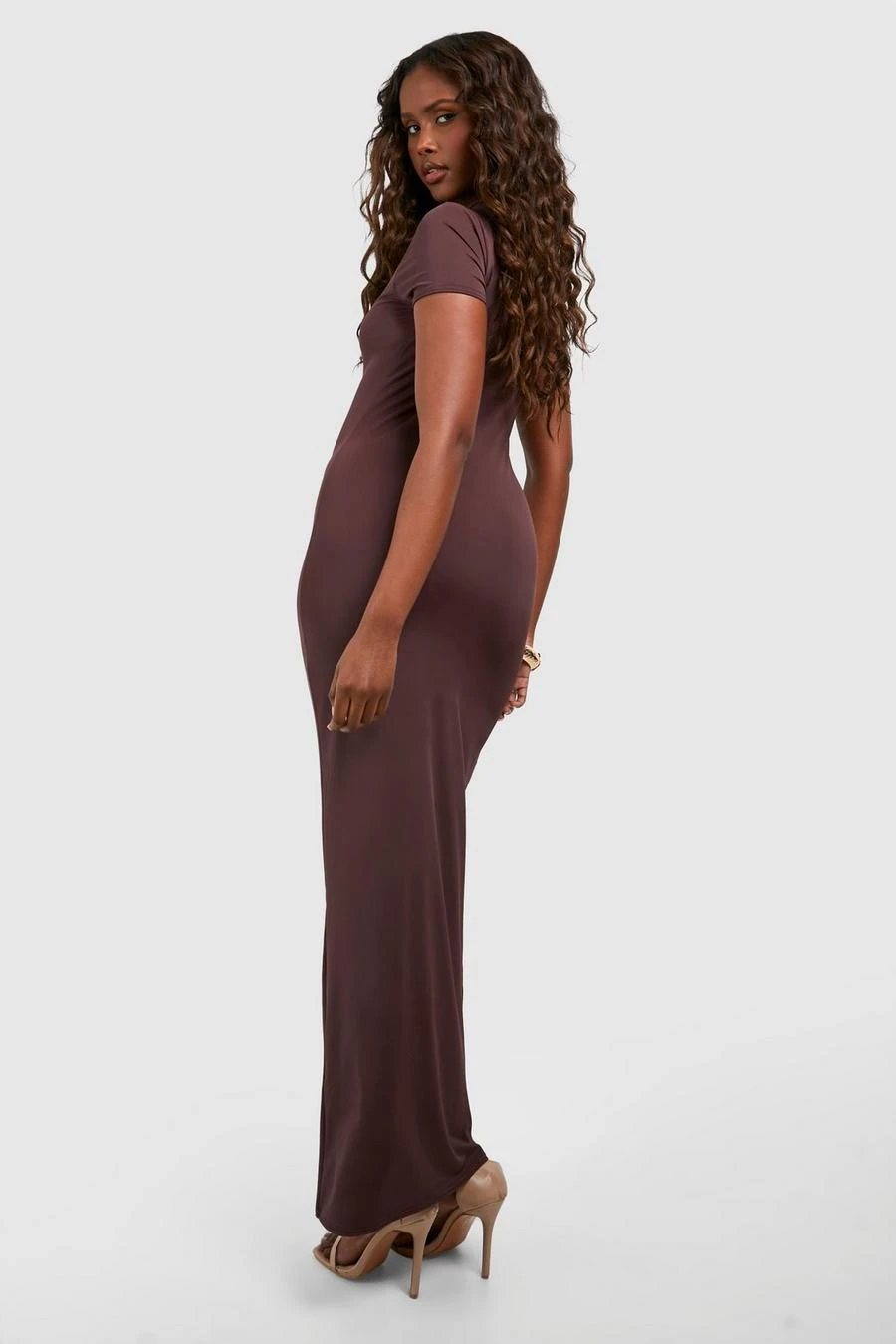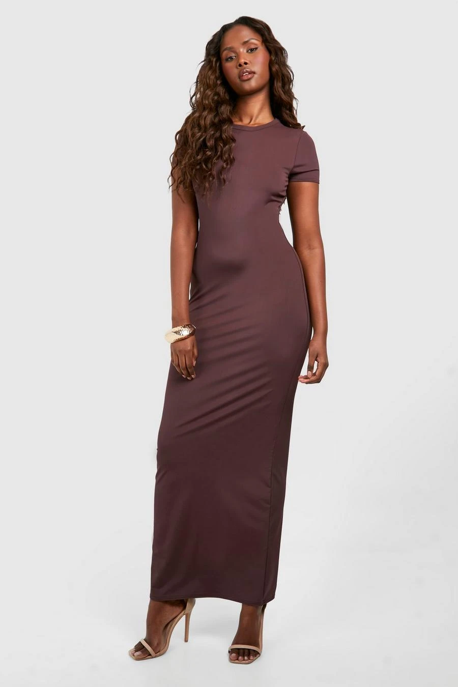 BOOHOO Premium Matte Slinky Crew Neck Maxi Dress