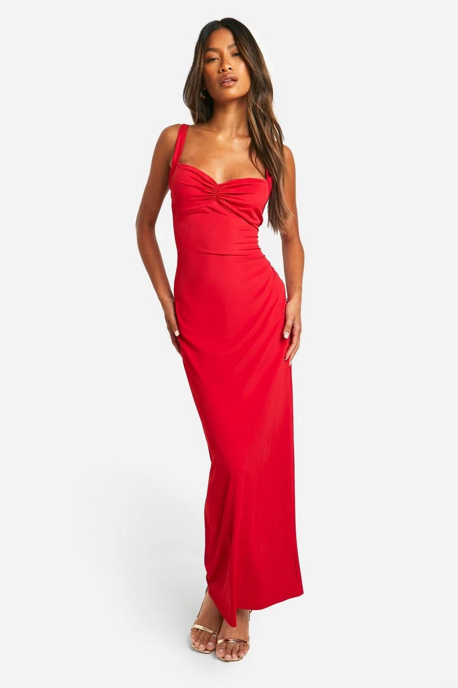 BOOHOO Premium Matte Slinky Ruched Bust Maxi Dress