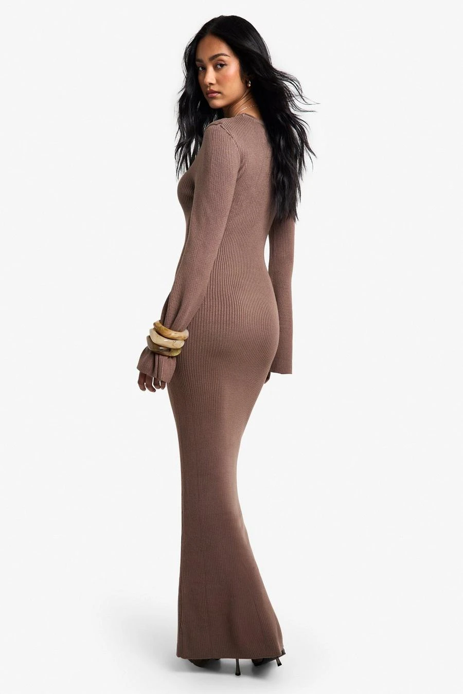 BOOHOO Premium Rib Flare Sleeve Knitted Maxi Dress