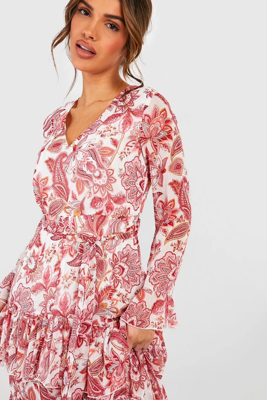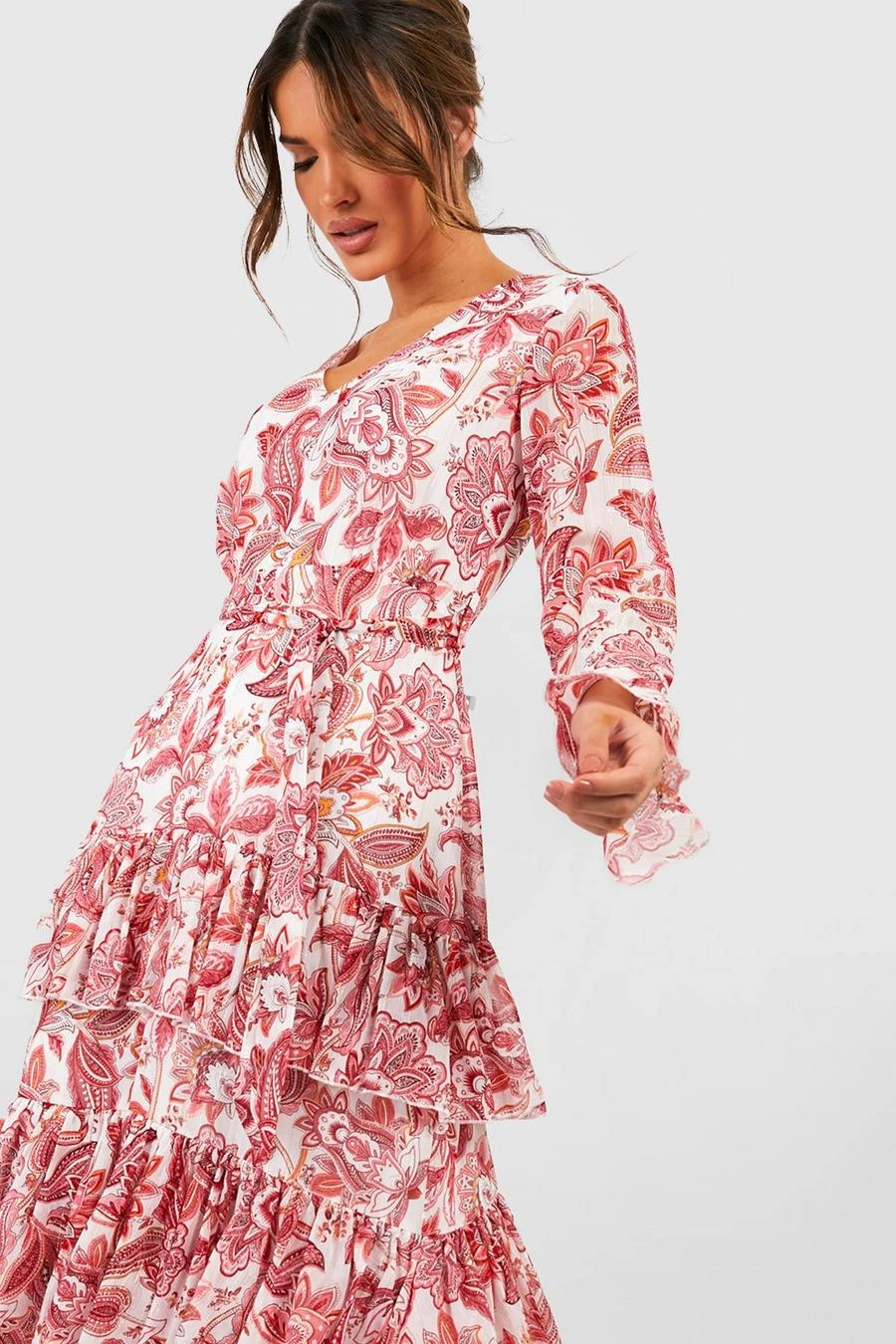 BOOHOO Printed Ruffle Hem Maxi Dress