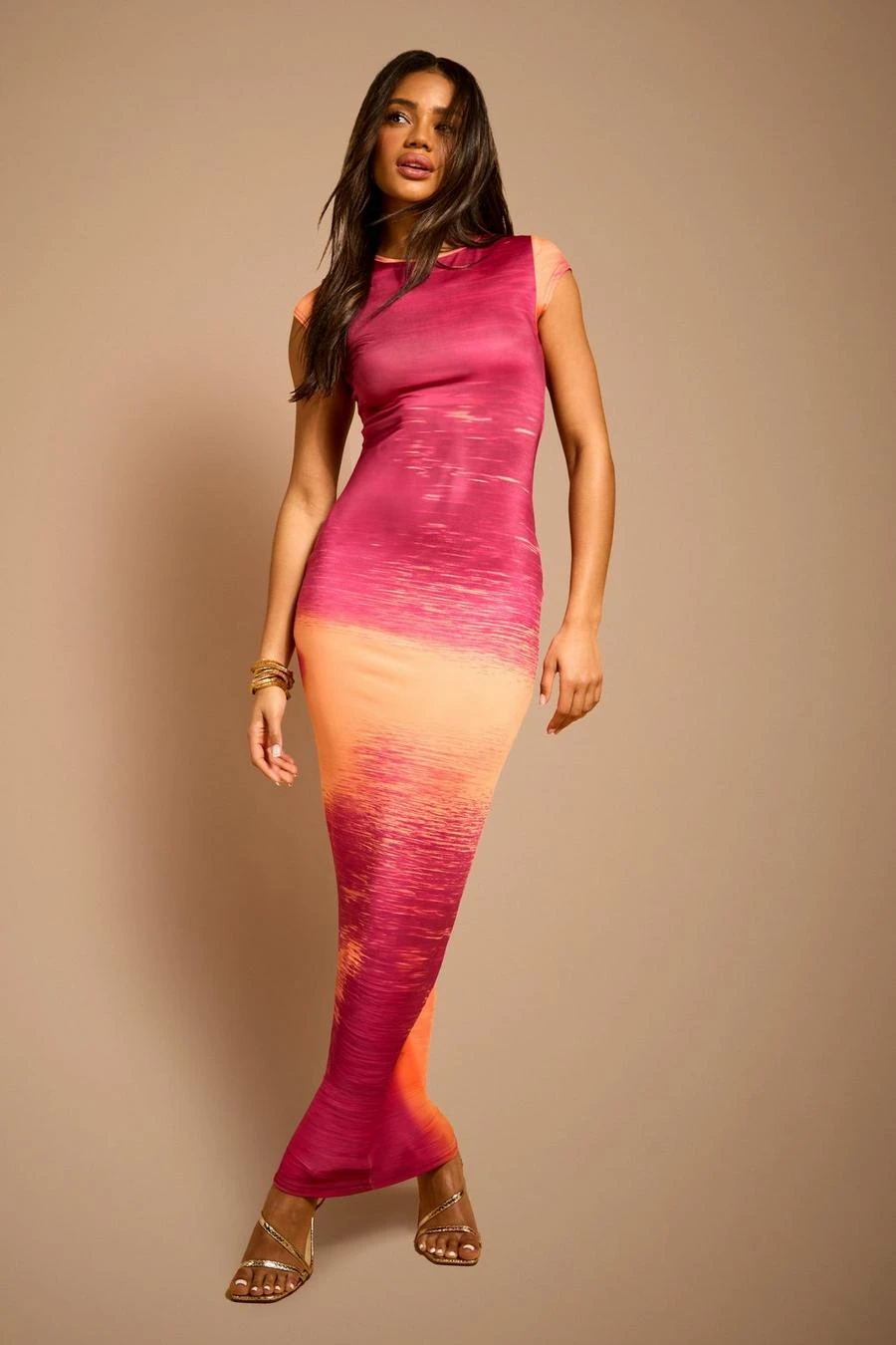 BOOHOO Printed Slinky Cap Sleeve Maxi Dress