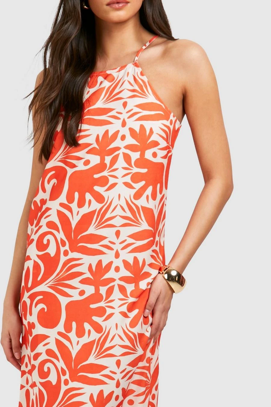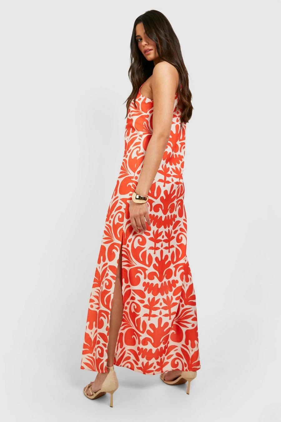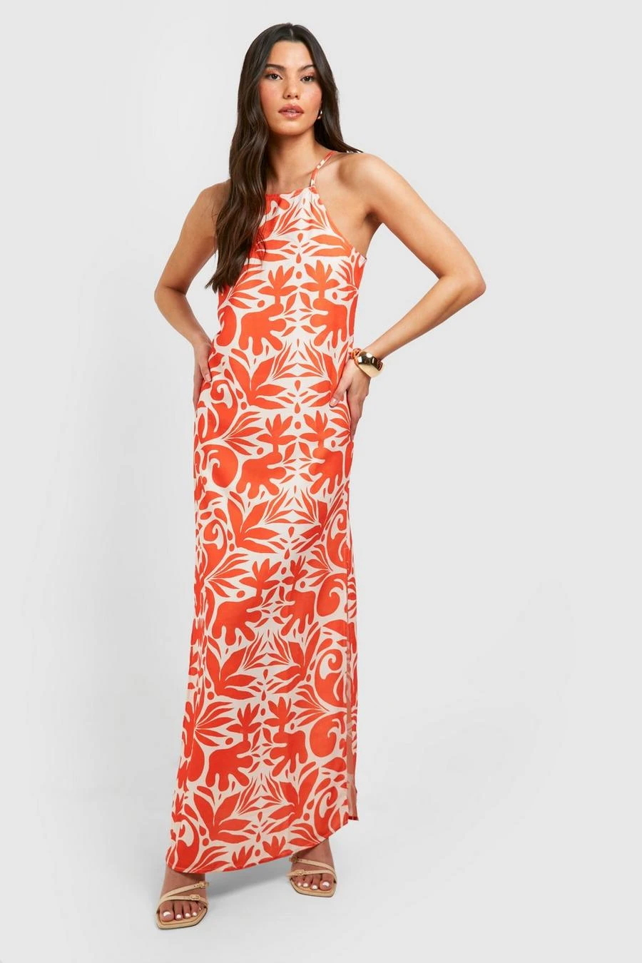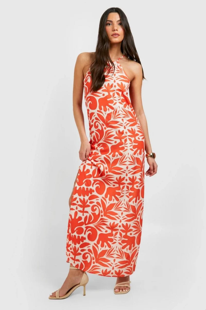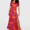BOOHOO Printed Square Neck Maxi Dress