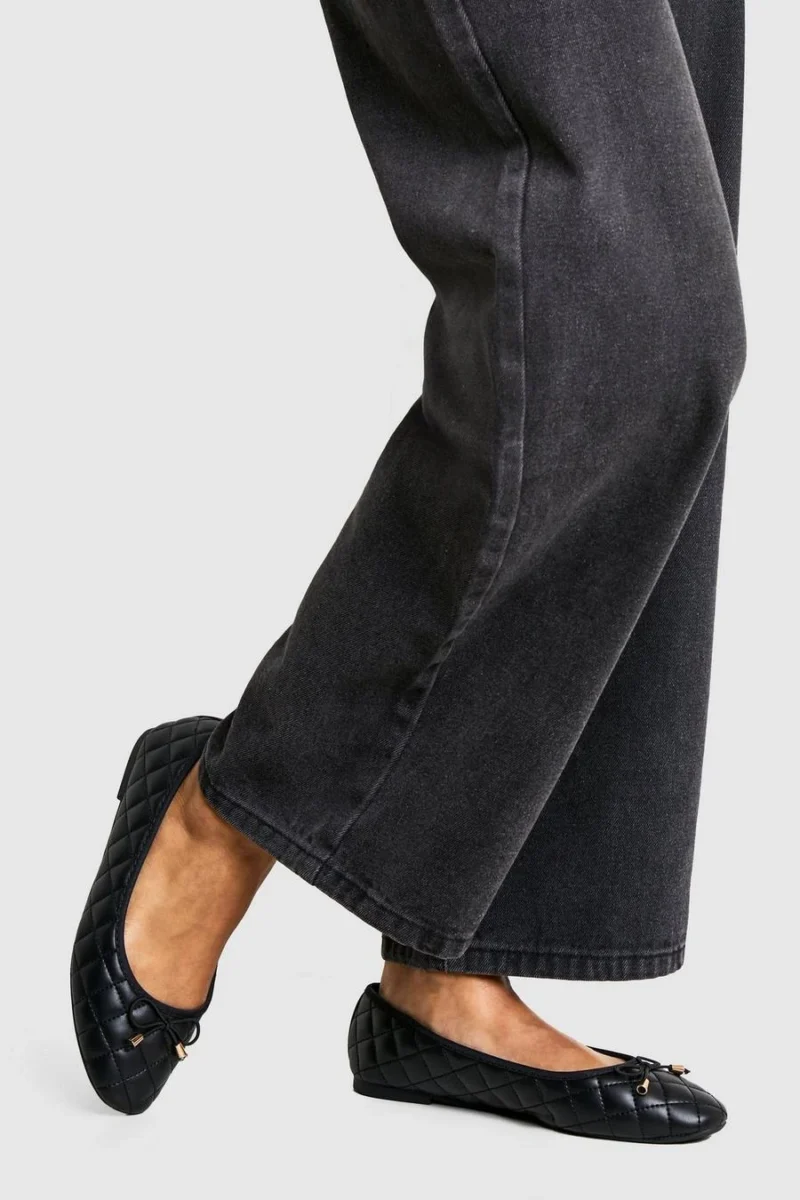 BOOHOO Quilted Bow Detail Ballet Pumps