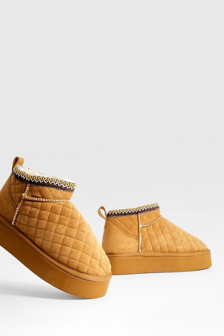 BOOHOO Quilted Ultra Mini Platform Cosy Boots
