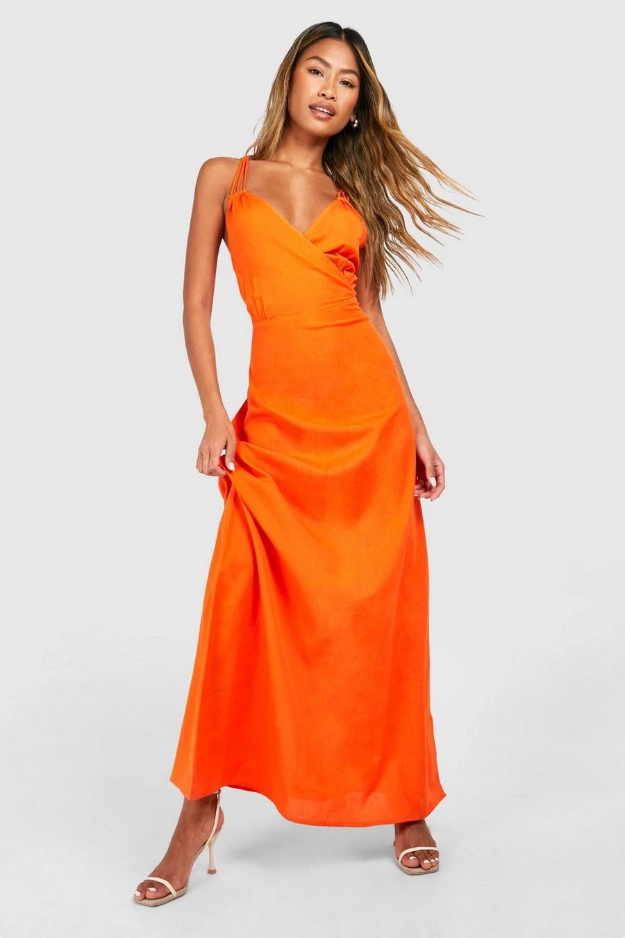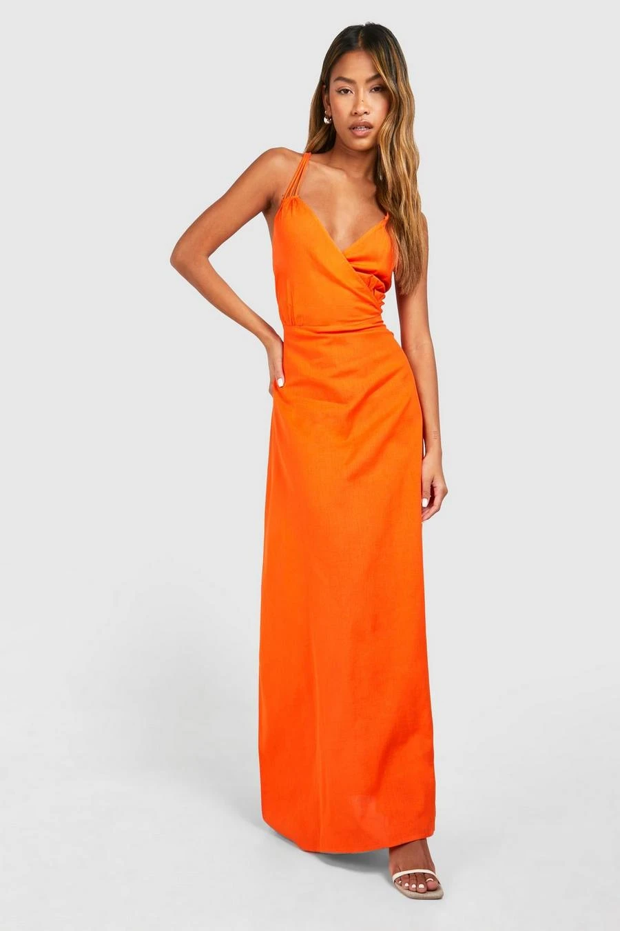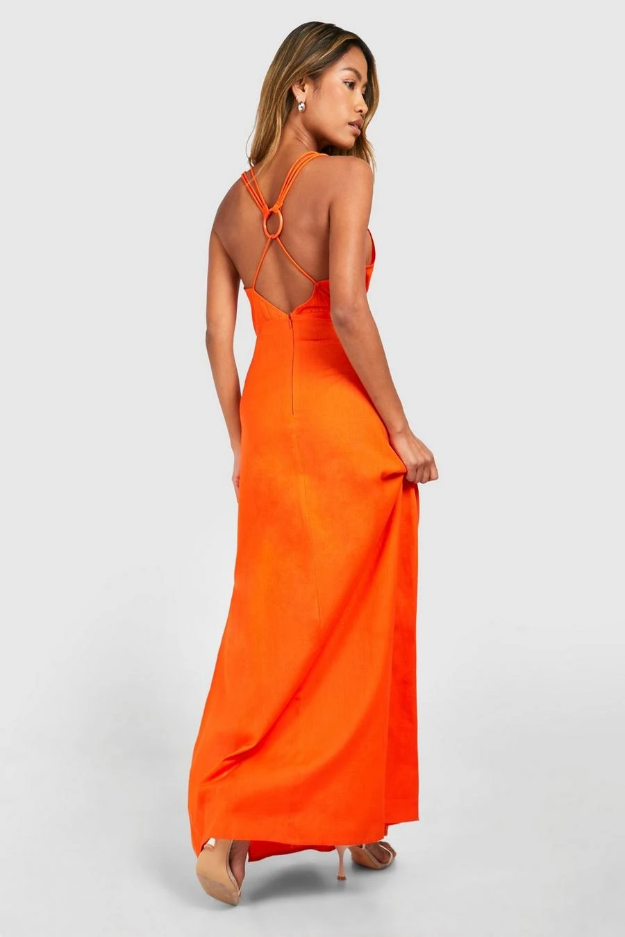 BOOHOO Ring Detail Linen Look Maxi Dress