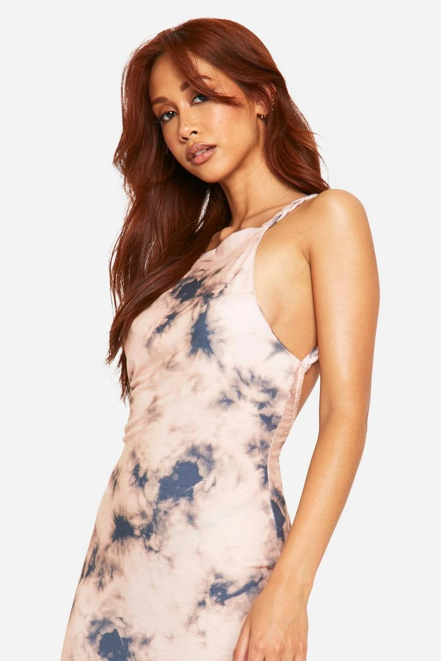 BOOHOO Rope Detail Ruched Bum Tie Dye Maxi Dress