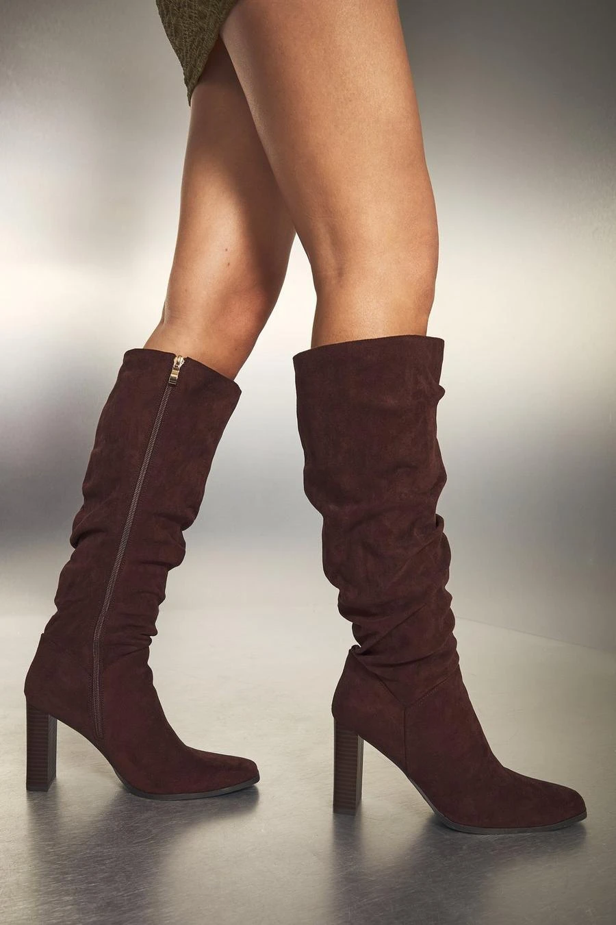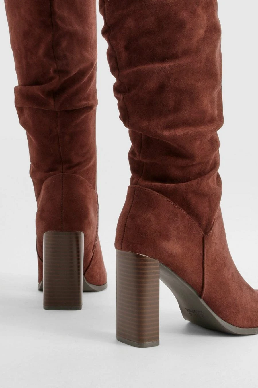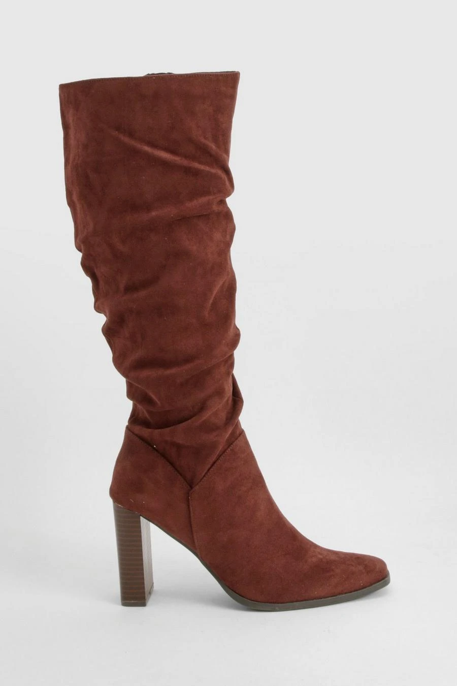 BOOHOO Ruched Block Heel Knee High Boot