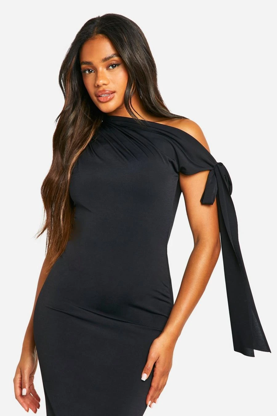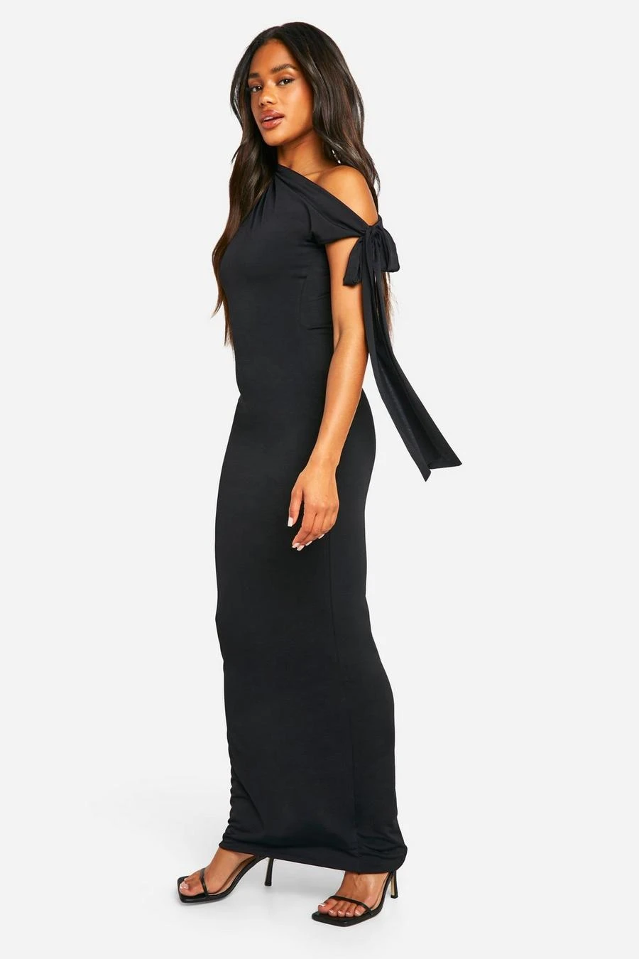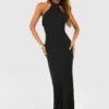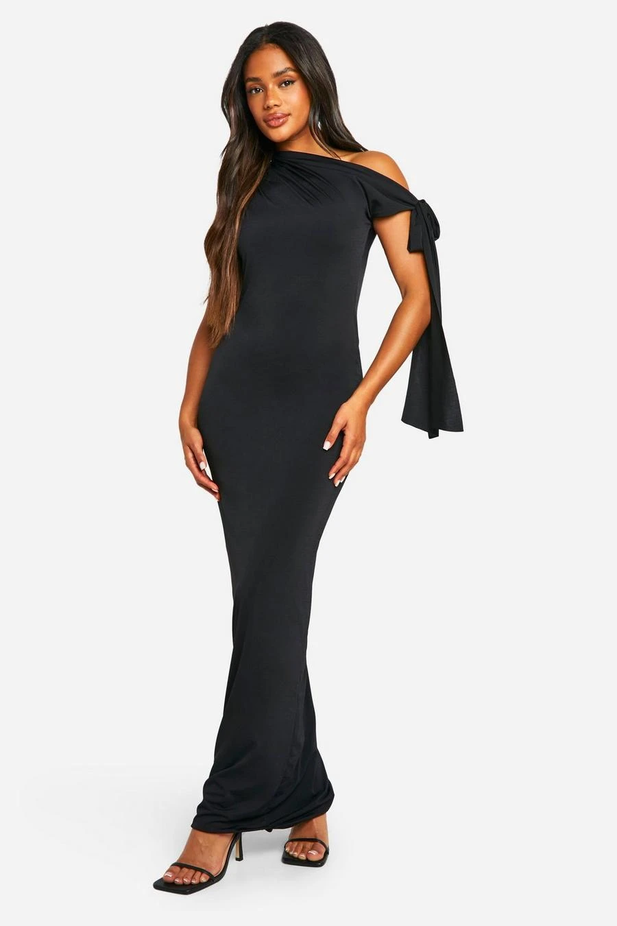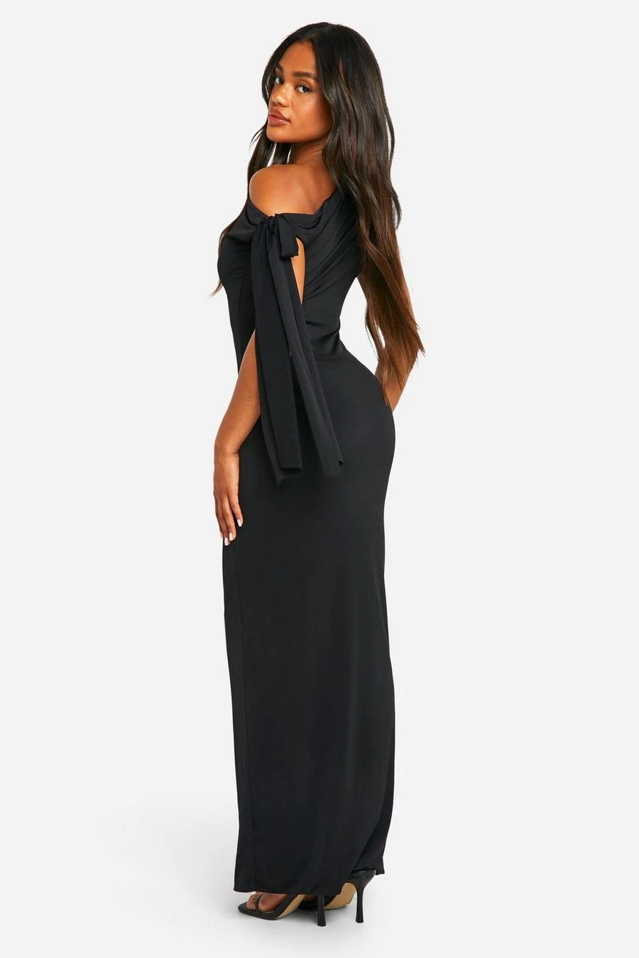 BOOHOO Ruched Slinky Off The Shoulder Maxi Dress