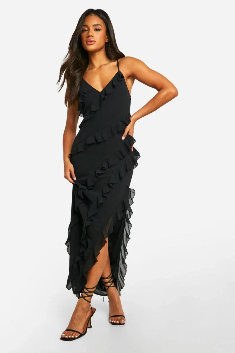 BOOHOO Ruffle Chiffon Maxi Dress