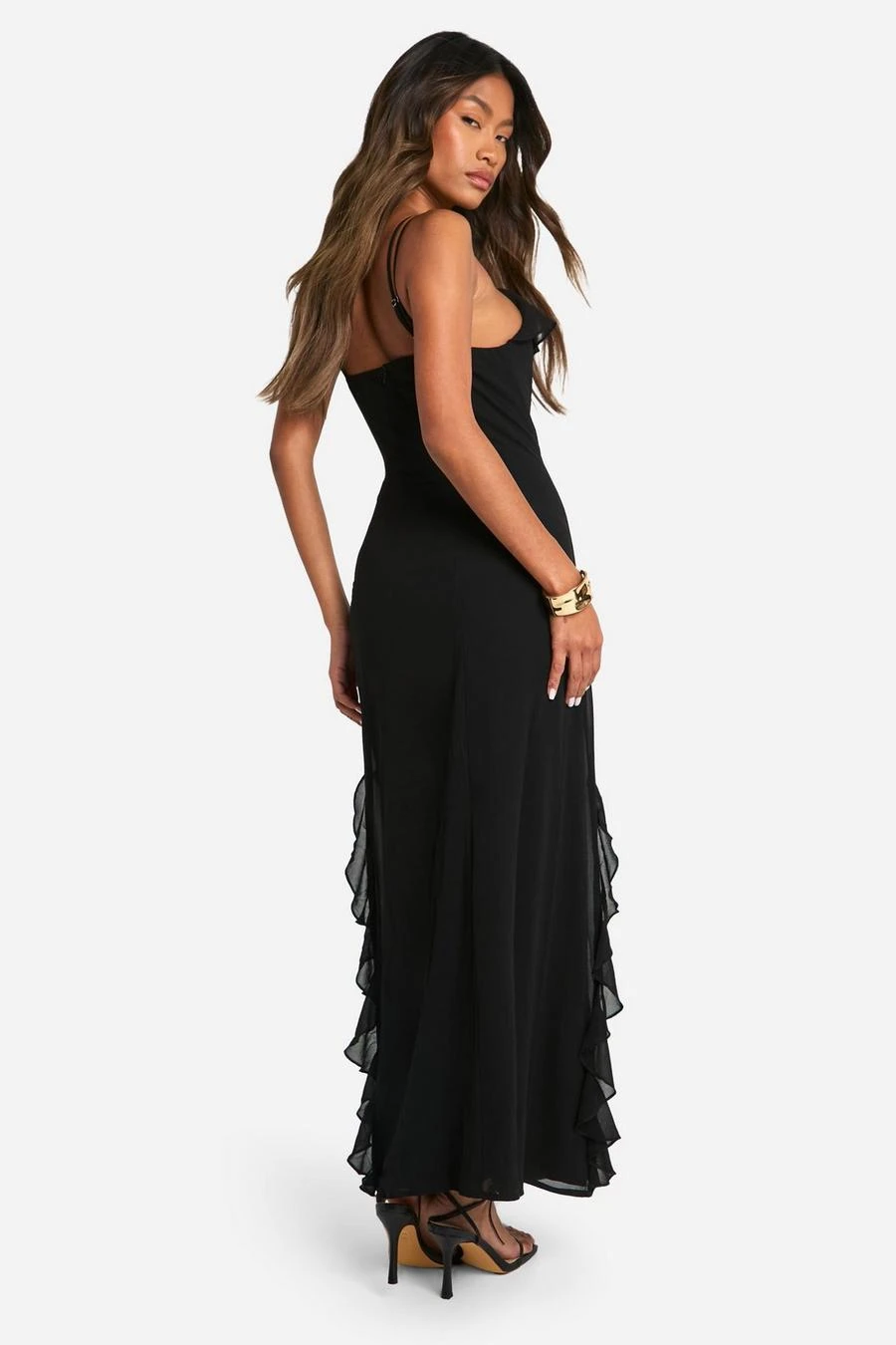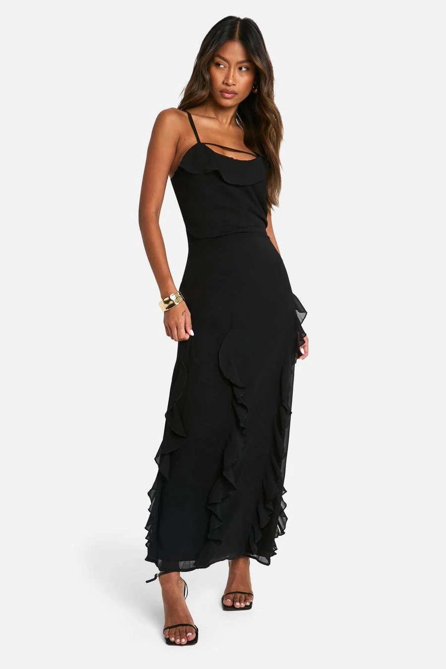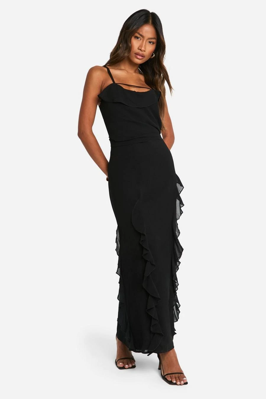 BOOHOO Ruffle Cowl Strappy Maxi Dress