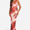 BOOHOO Satin Cold Shoulder Maxi Dres