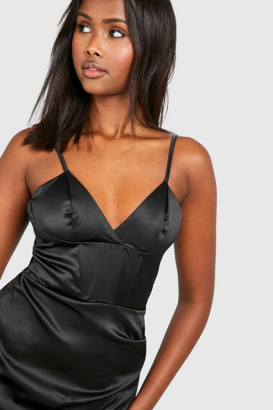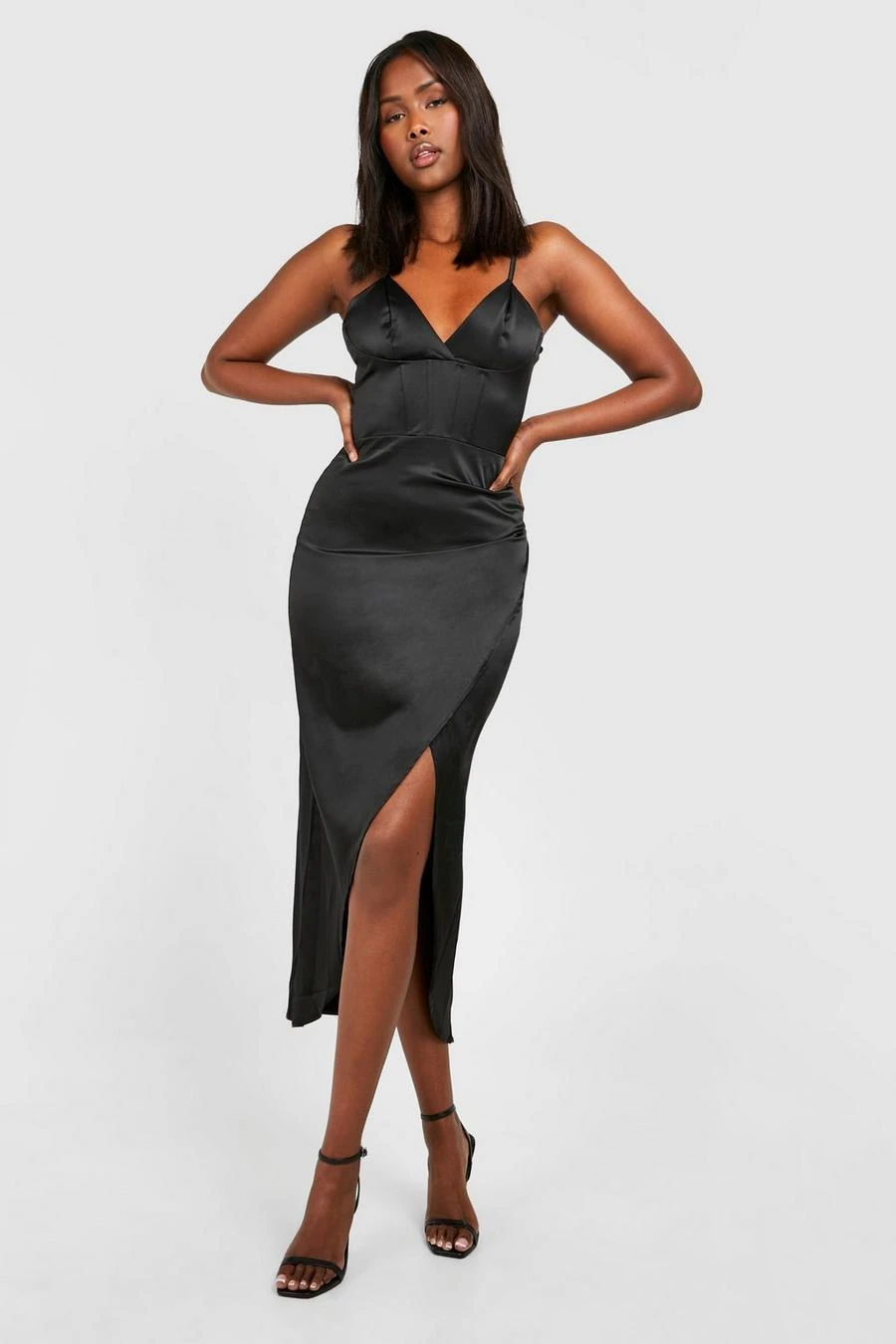 BOOHOO Satin Corset Wrap Midaxi Dress