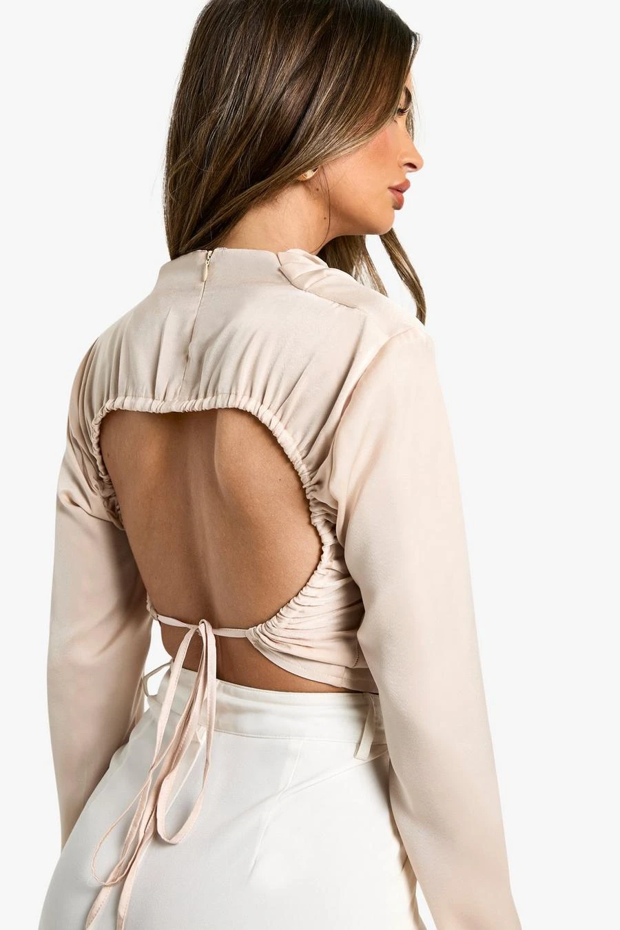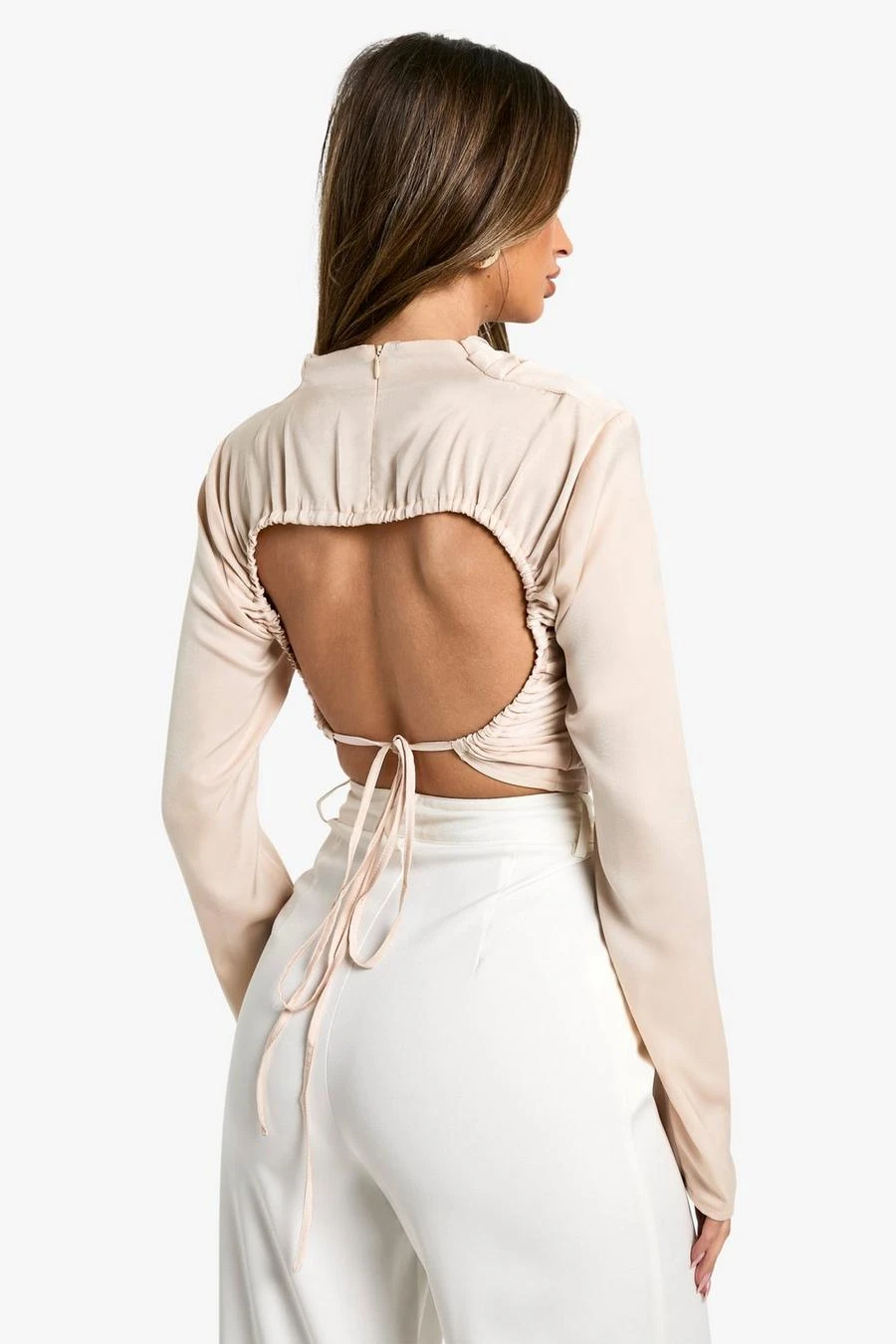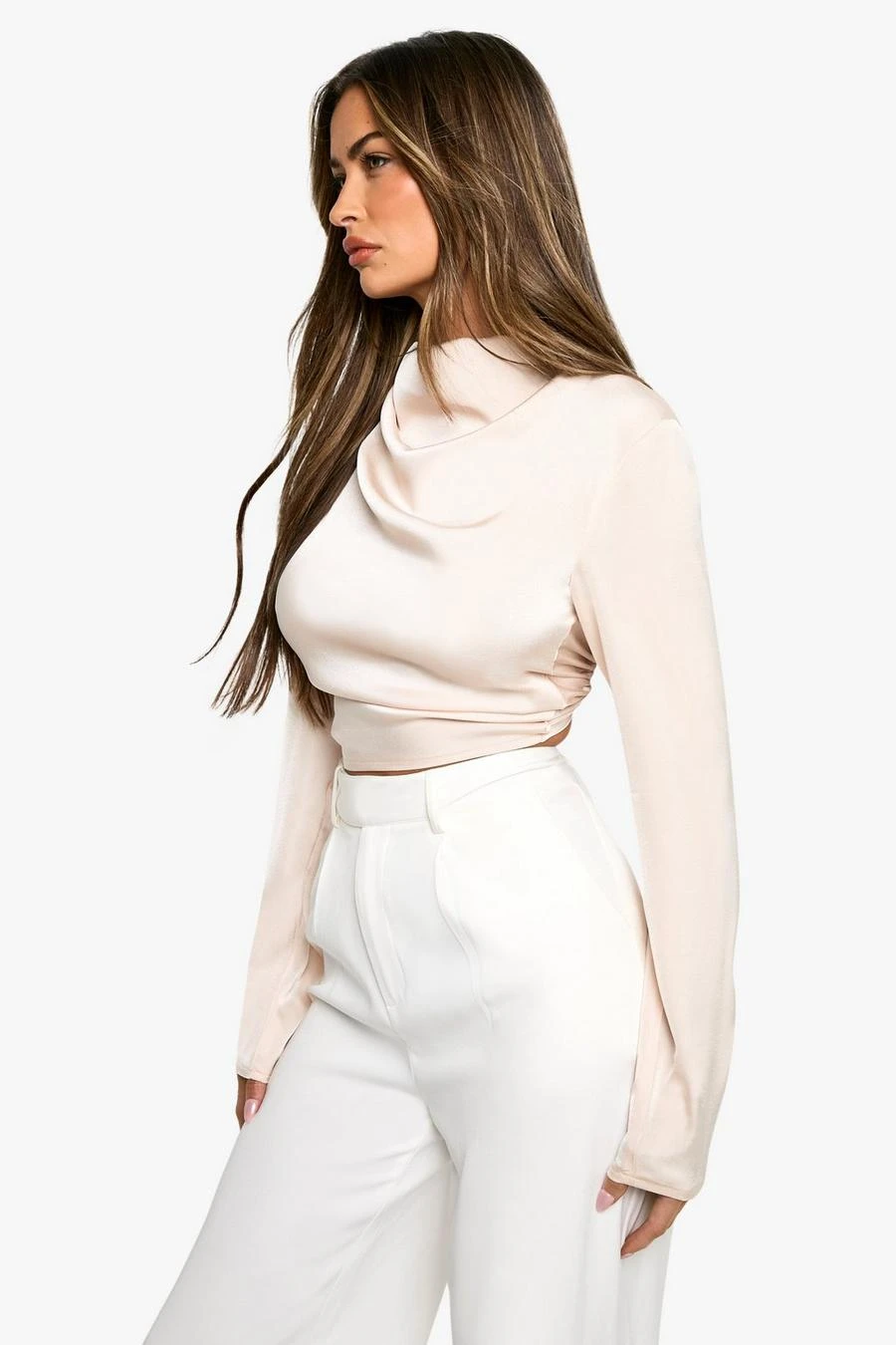 BOOHOO Satin Cowl High Neck Long Sleeve Blouse