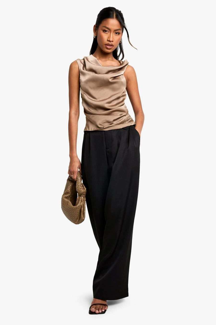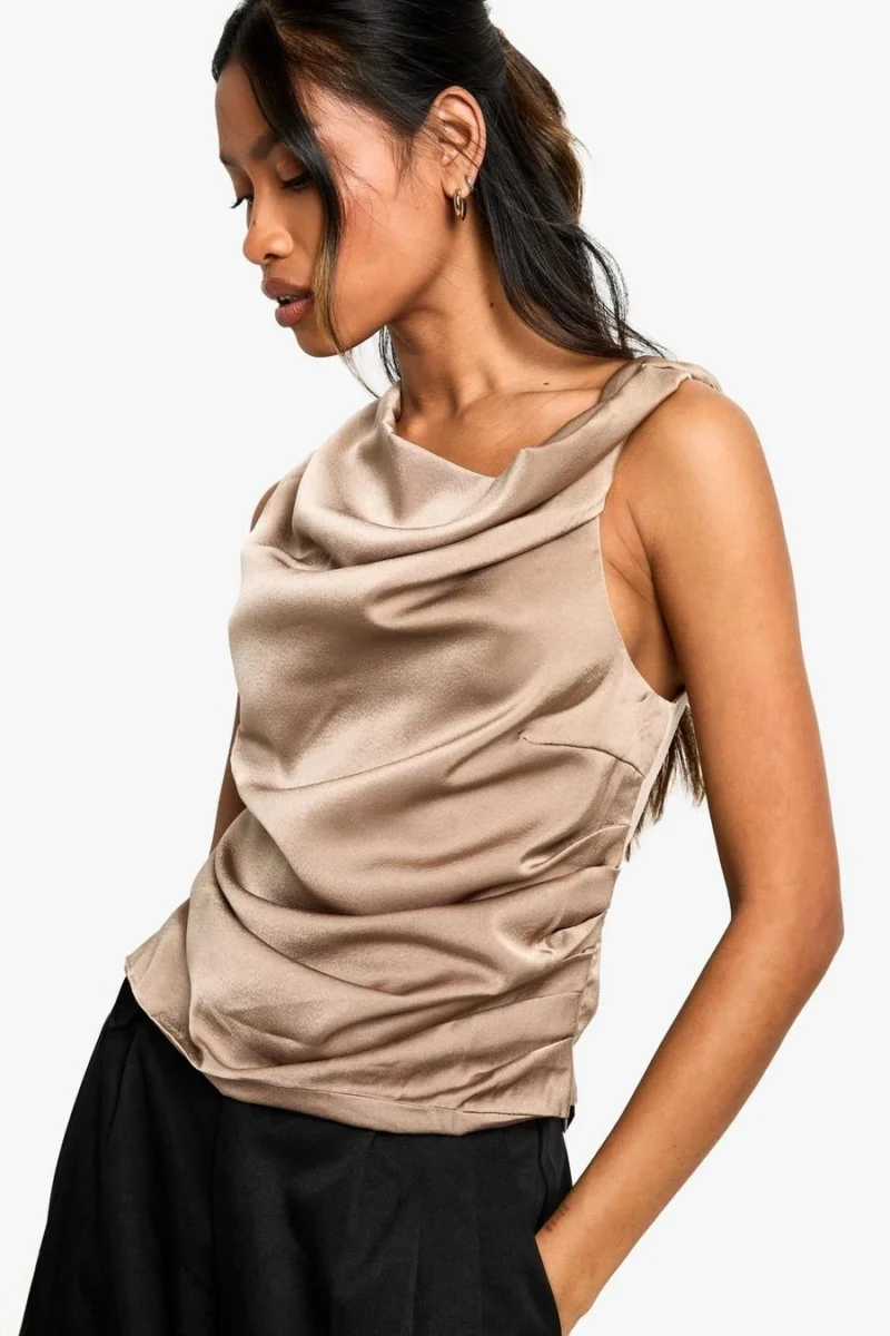 BOOHOO Satin Cowl Ruched Sleeveless Blouse