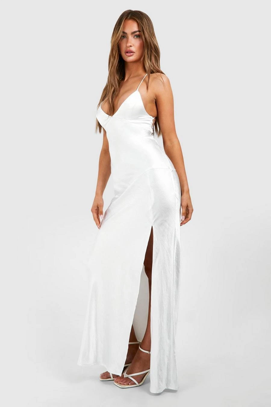 BOOHOO Satin Cross Back Maxi Slip Dress