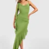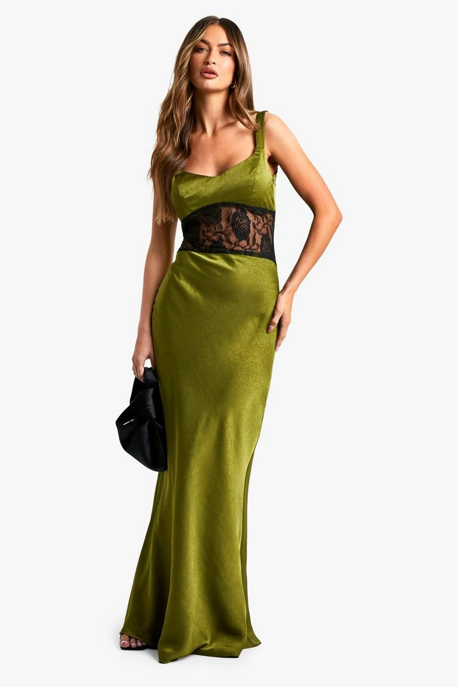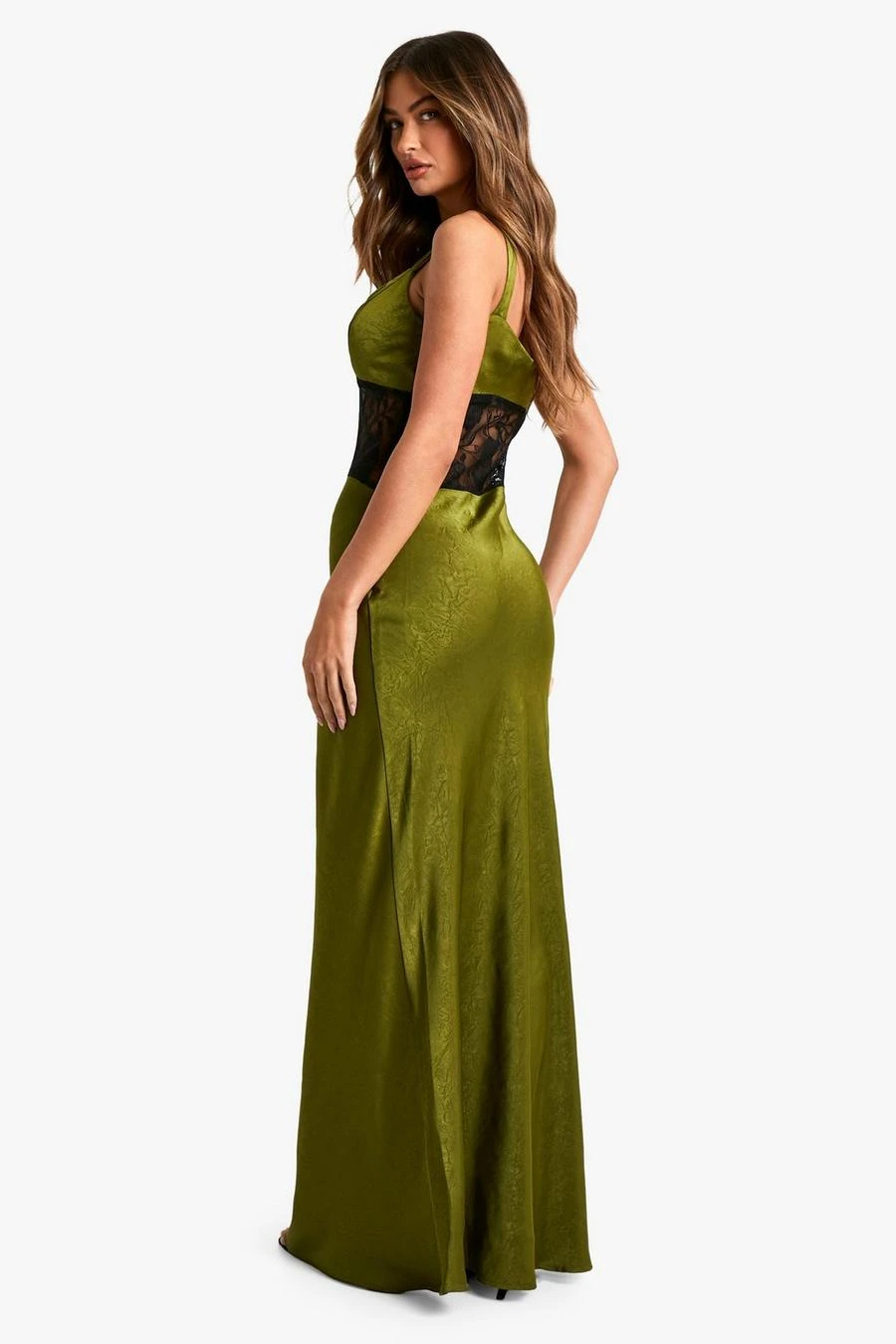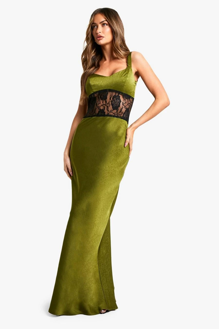 BOOHOO Satin Lace Column Maxi Dress