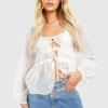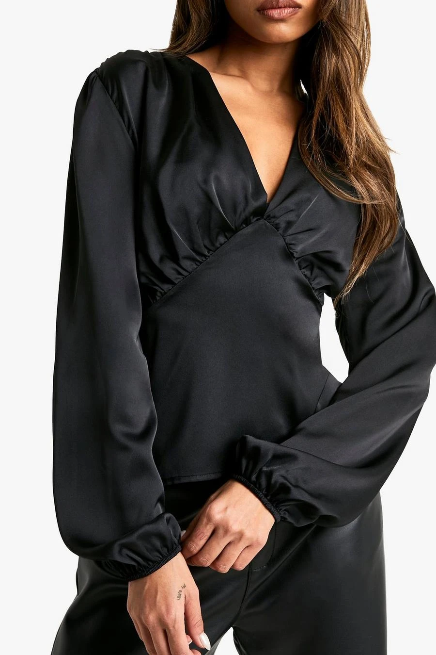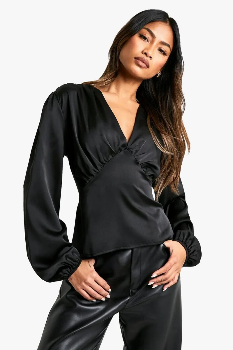 BOOHOO Satin Long Sleeve Blouse