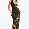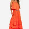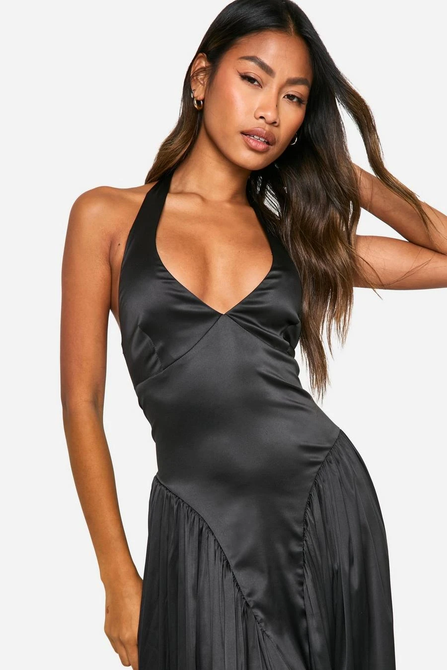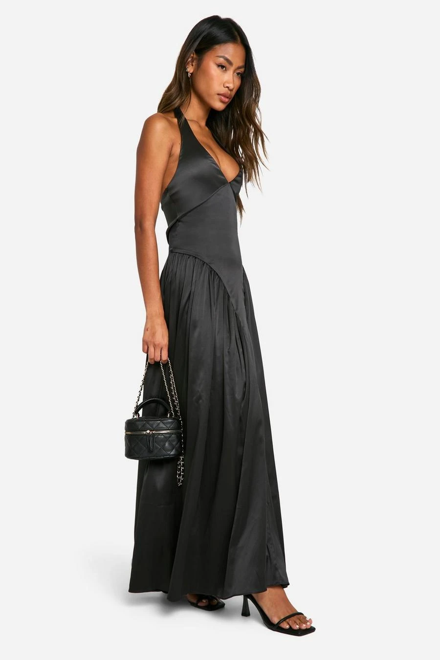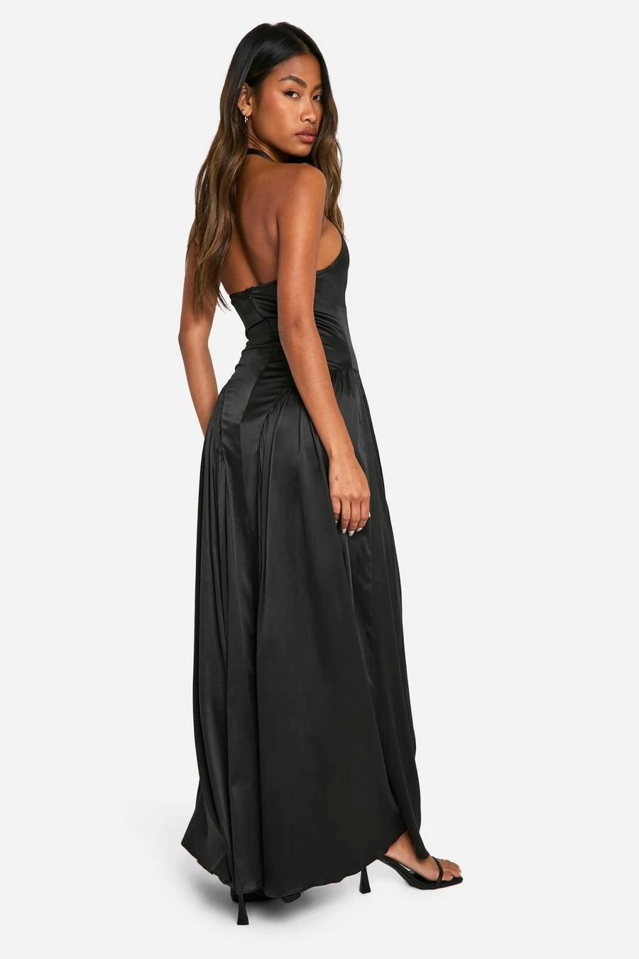 BOOHOO Satin Milkmaid Halterneck Maxi Dress