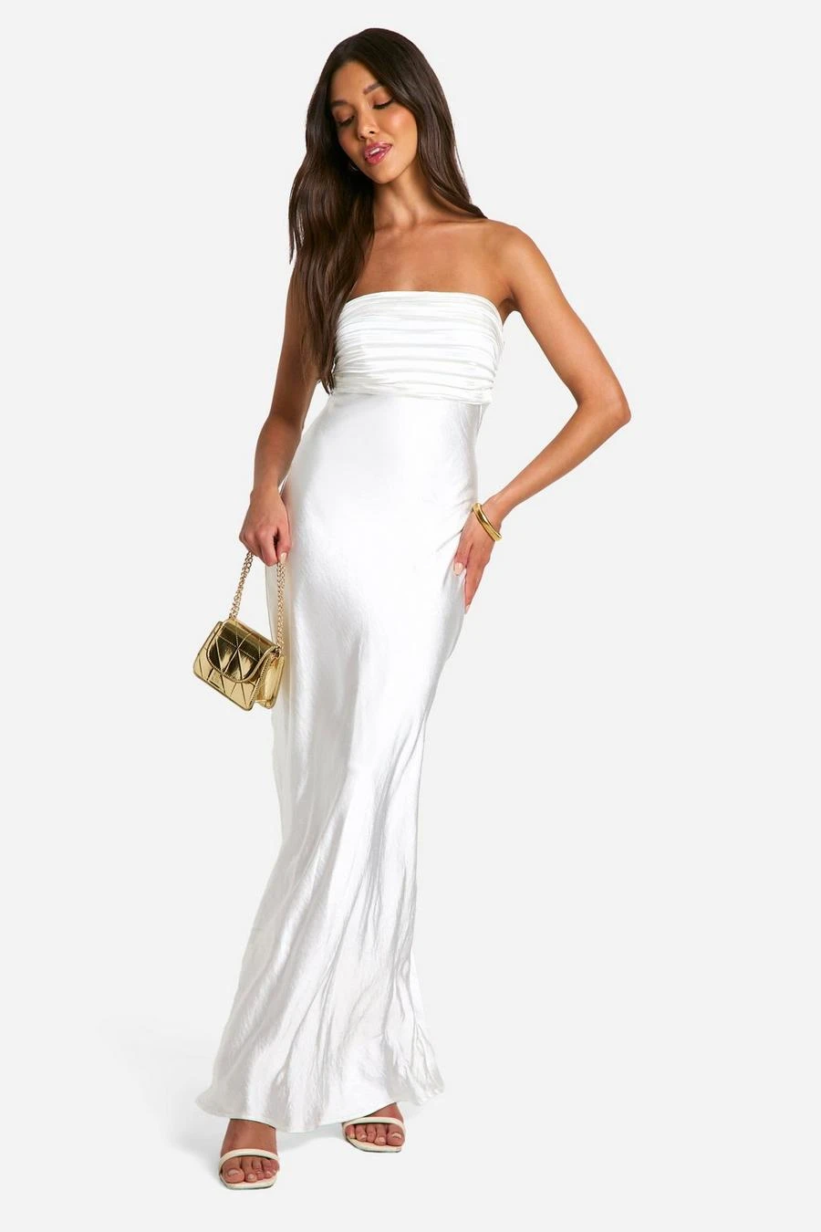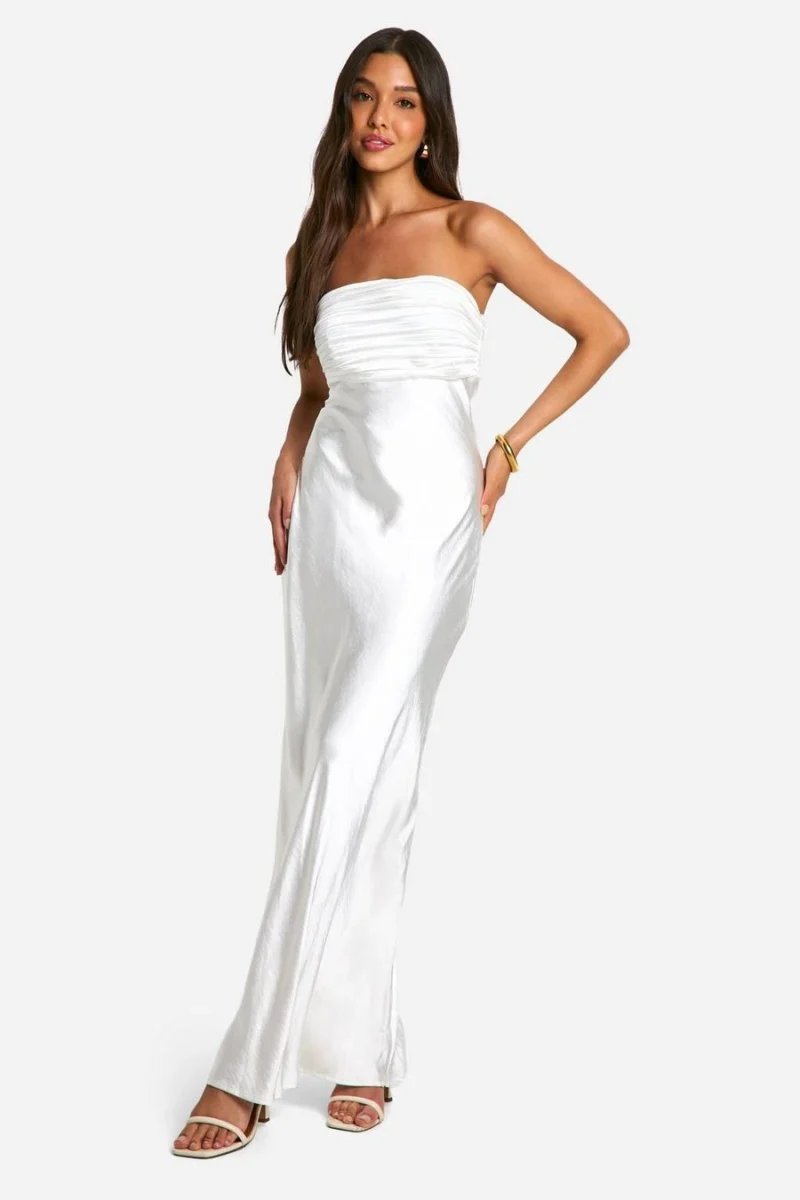 BOOHOO Satin Pleated Bandeau Maxi Dress