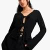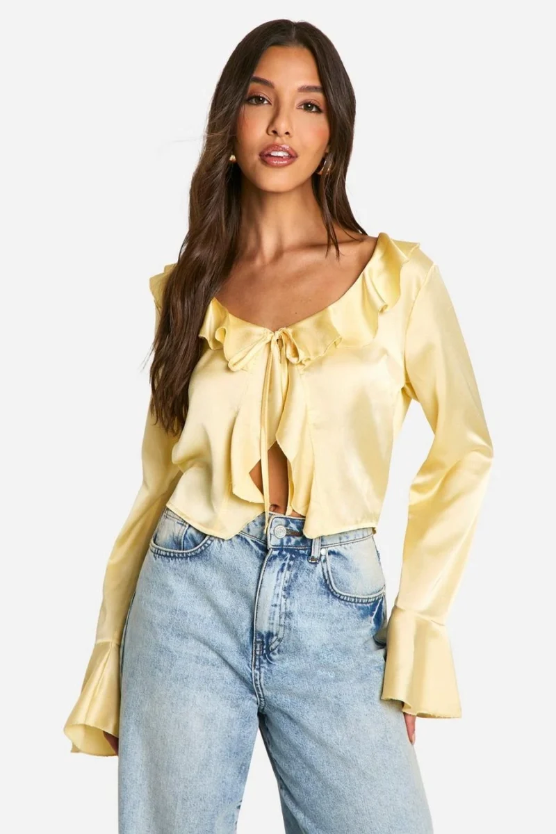 BOOHOO Satin Ruffle Tie Front Blouse