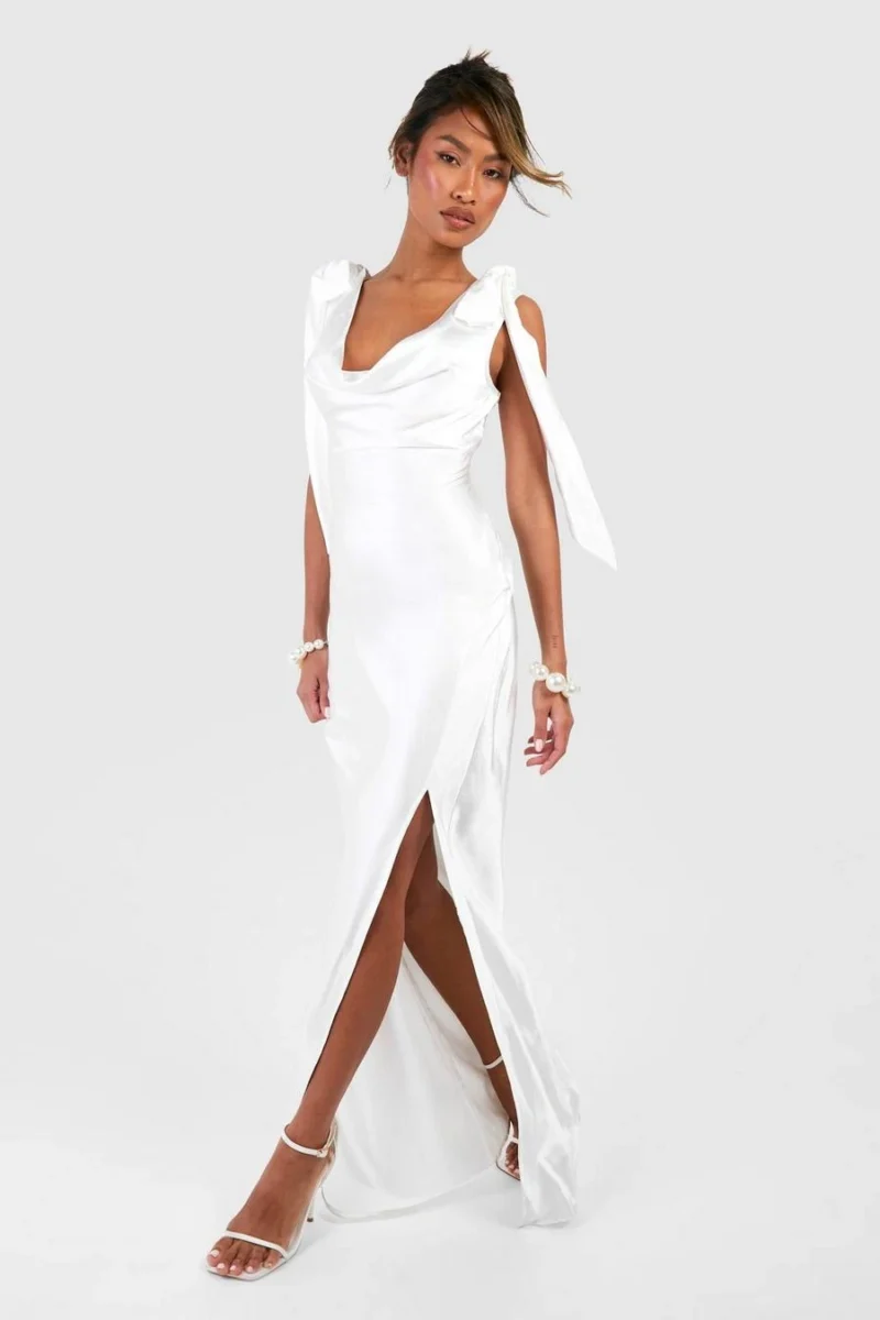 BOOHOO Satin Tie Strap Maxi Slip Dress