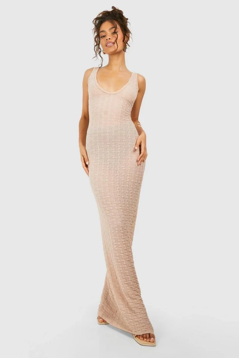 BOOHOO Scoop Neck Sheer Maxi Dress