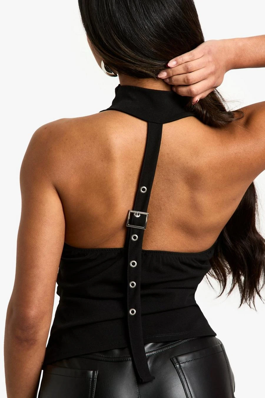BOOHOO Scuba Crepe Buckle Strap Halter