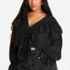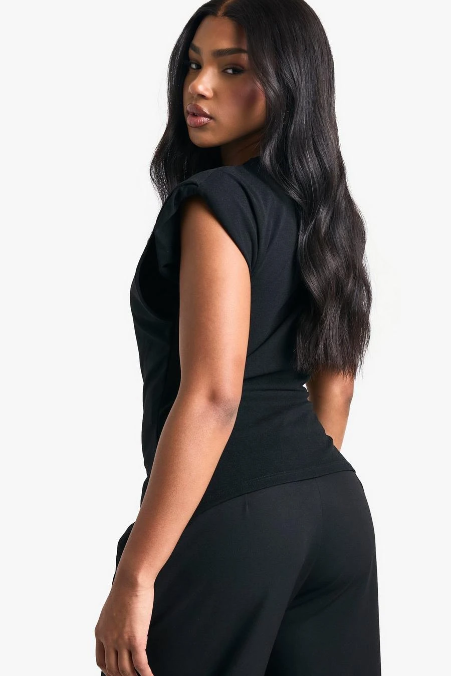 BOOHOO Scuba Crepe Shoulder Pad Top
