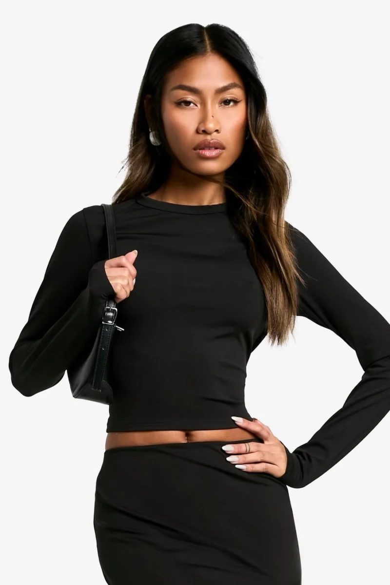 BOOHOO Sculpting Slinky Crew Neck Long Sleeve Top
