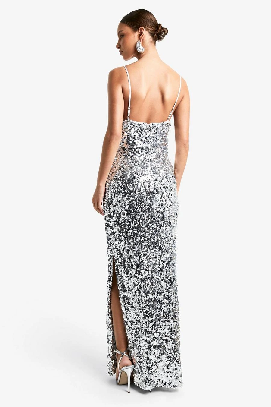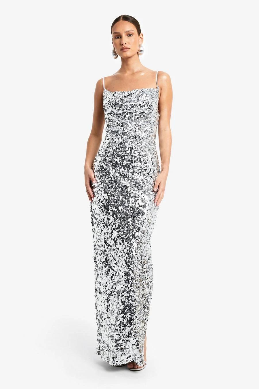 BOOHOO Sequin Cowl Neck Maxi Slip Dress