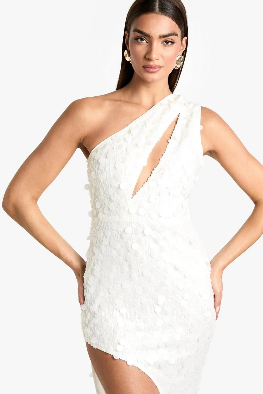 BOOHOO Sequin Cut Out Split Leg Maxi Dress