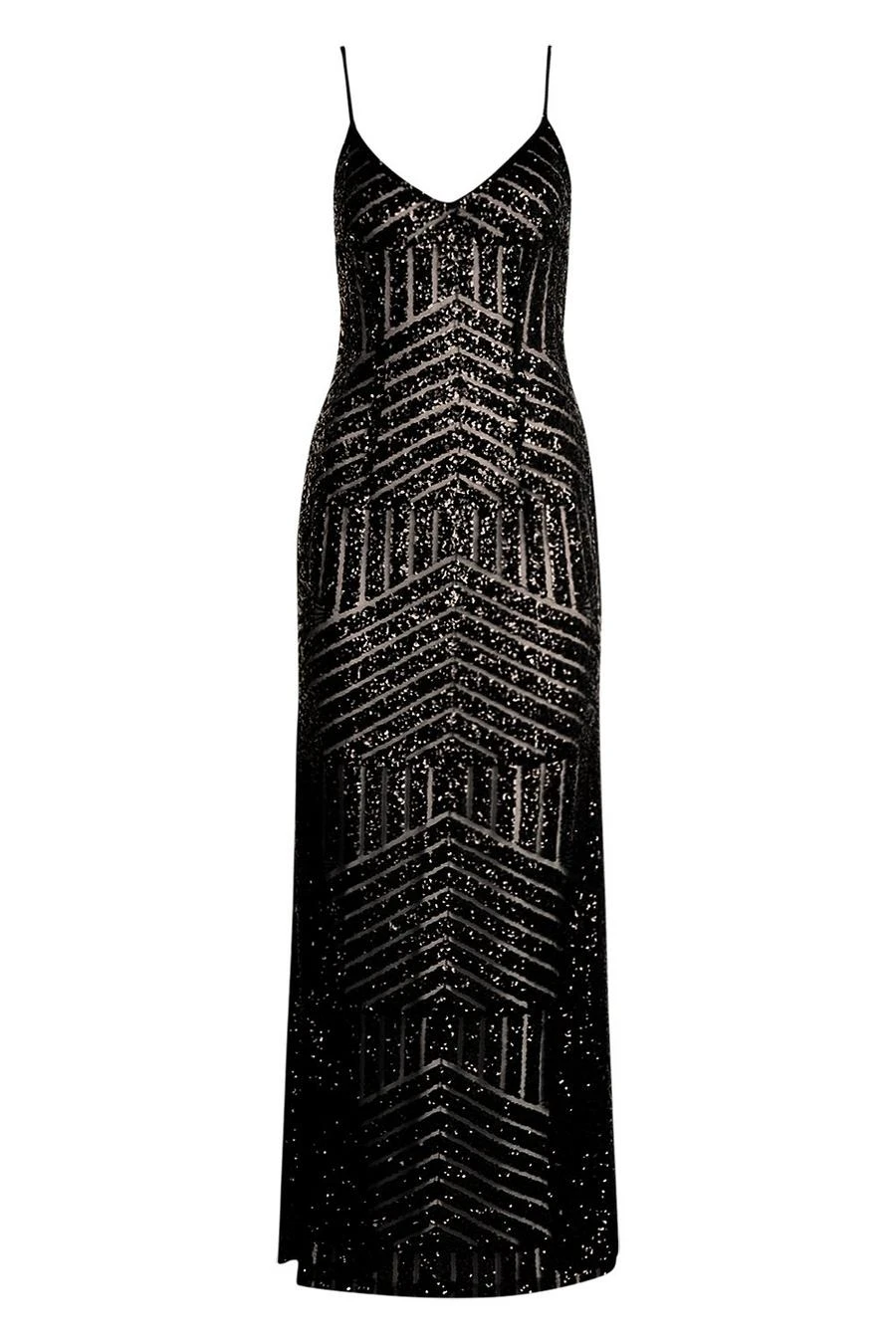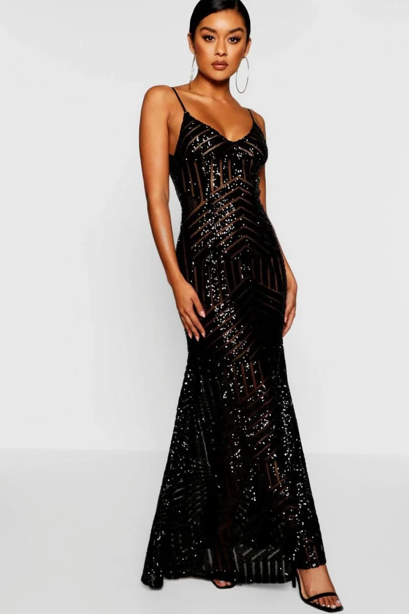 BOOHOO Sequin & Mesh Strappy Maxi Dress