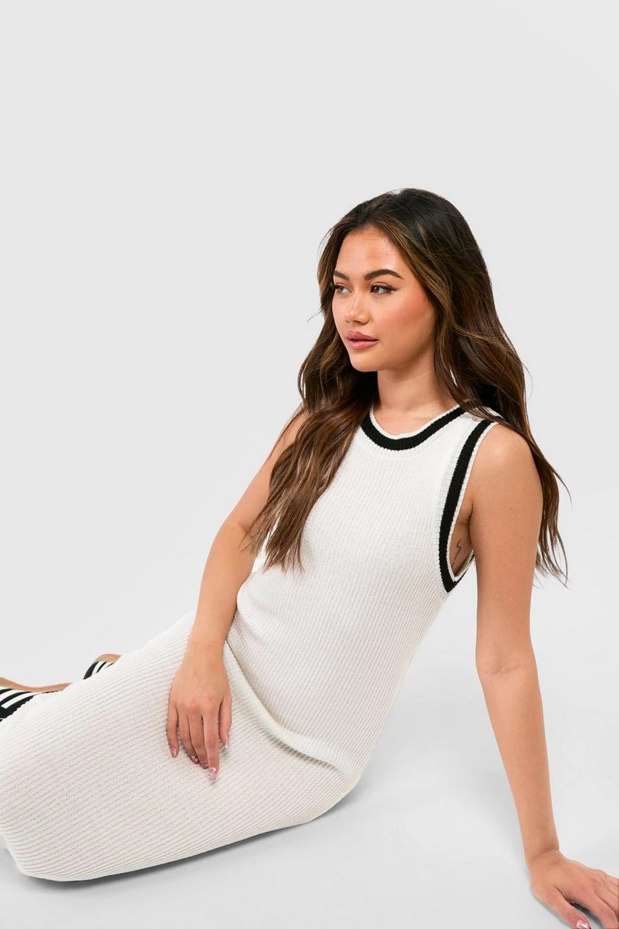 BOOHOO Sheer Knit Contrast Binding Beach Maxi Dress
