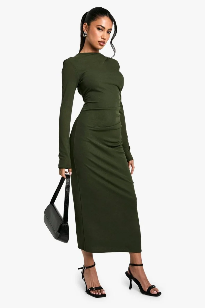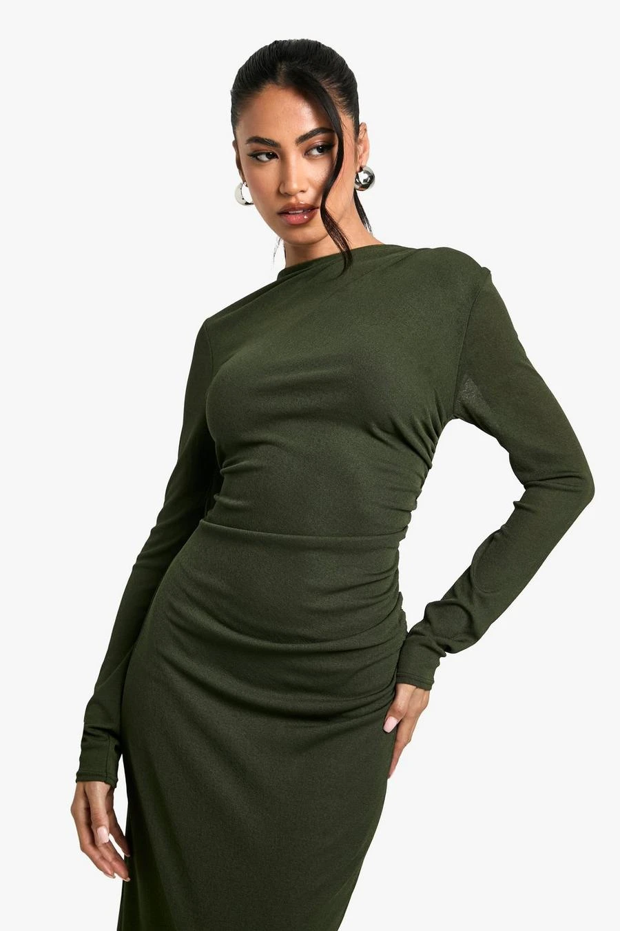 BOOHOO Sheer Ruched Long Sleeve Maxi Dress