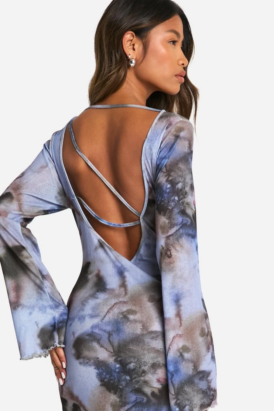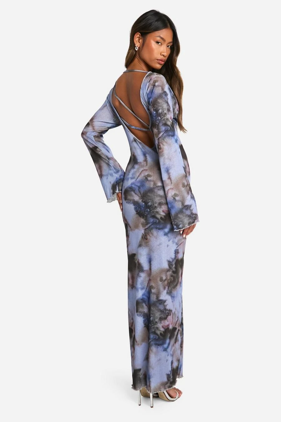 BOOHOO Sheer Scoop Back Abstract Maxi Dress