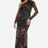 BOOHOO Sheer Scoop Back Floral Maxi Dress