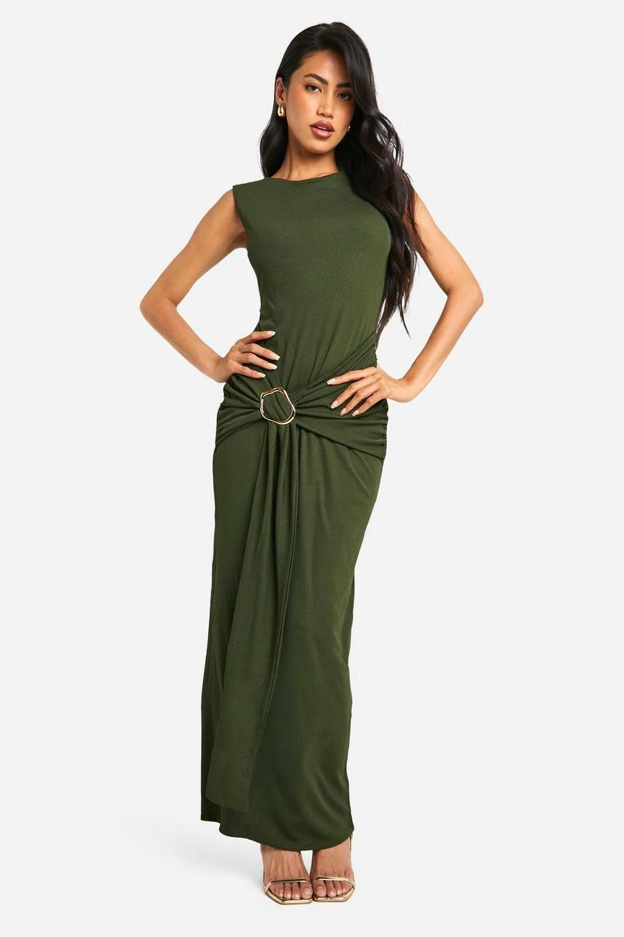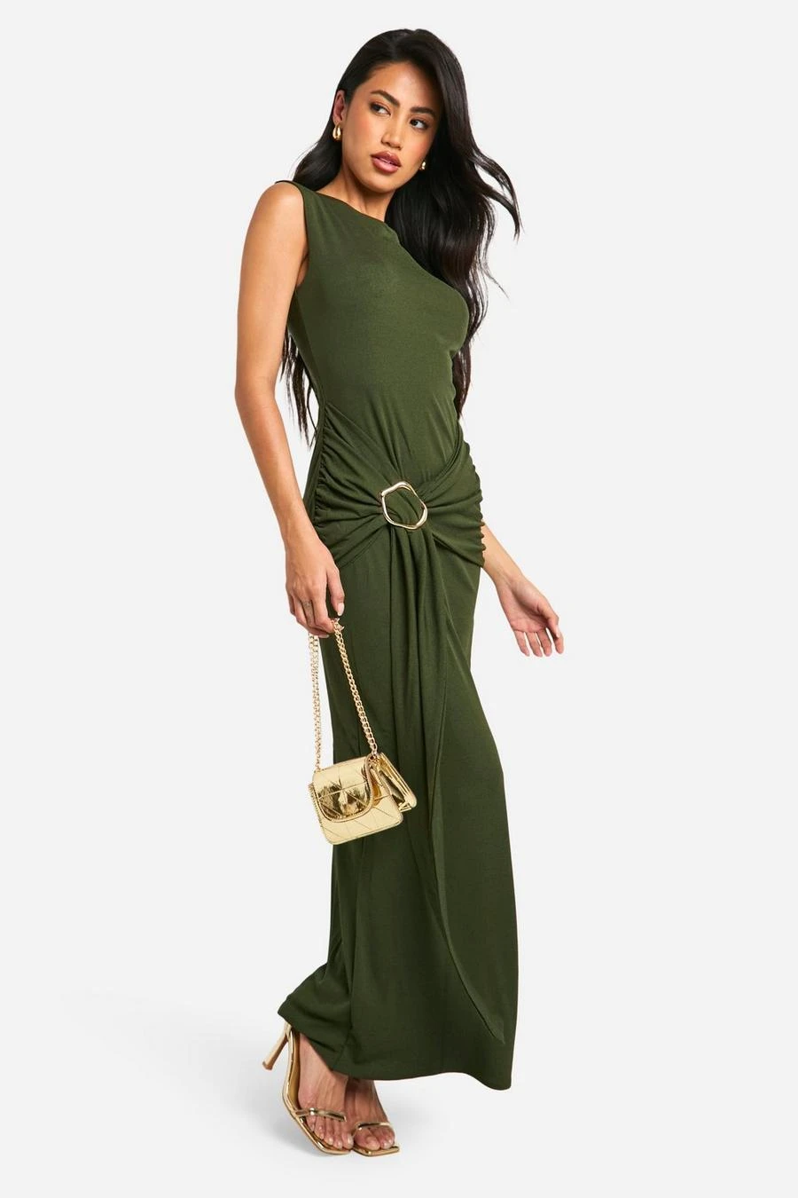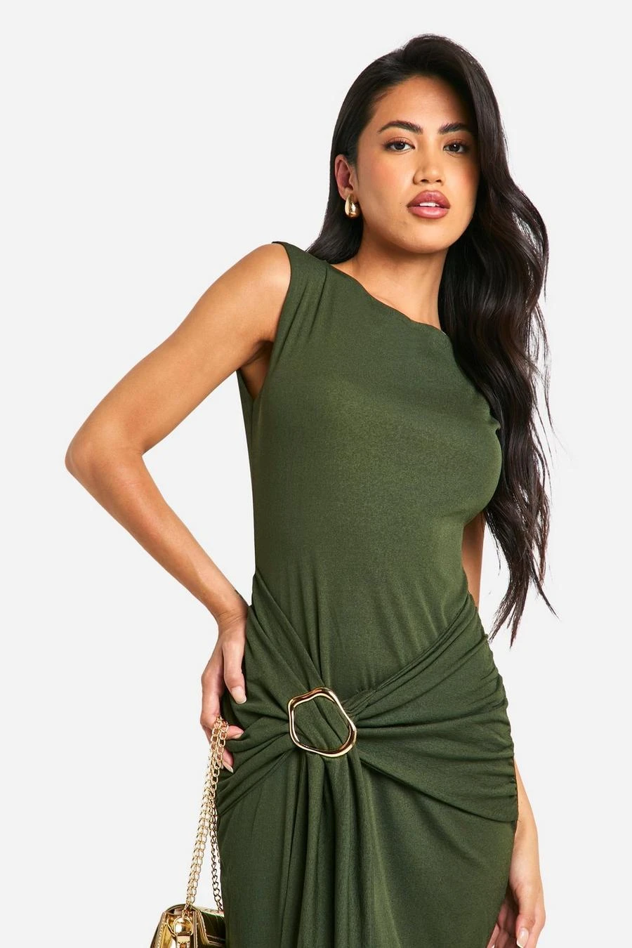 BOOHOO Slash Neck Drape Trim Detail Textured Maxi Dress
