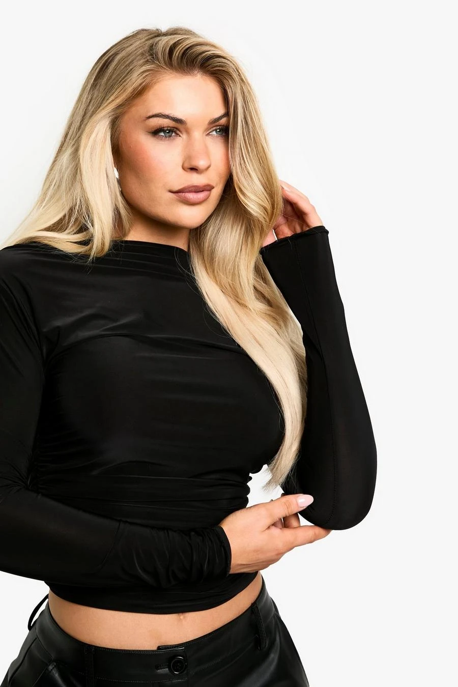 BOOHOO Slinky Extreme Ruched Long Sleeve Top