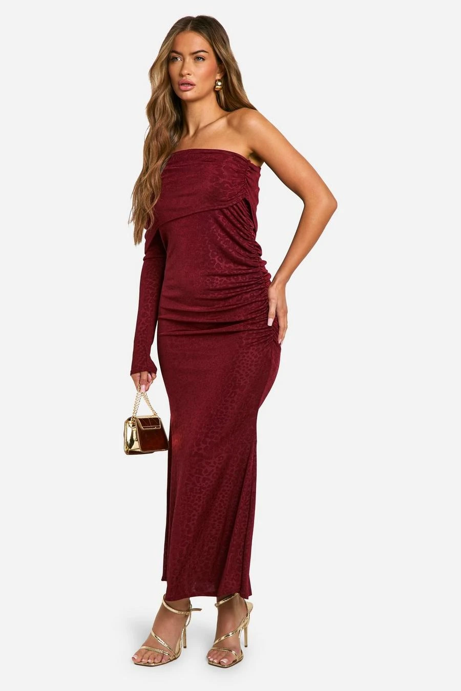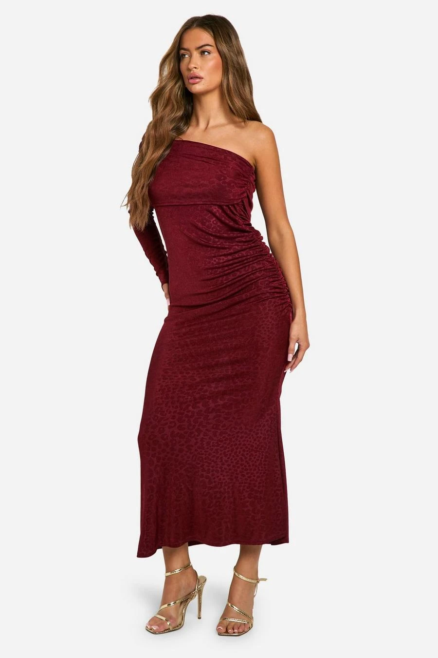 BOOHOO Slinky Leopard One Shoulder Maxi Dress