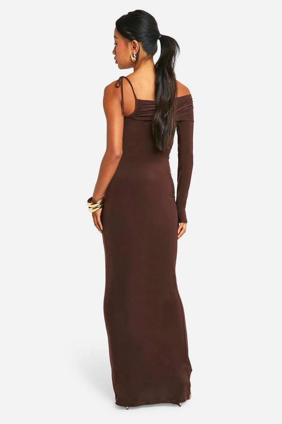 BOOHOO Slinky One Shoulder Maxi Dress