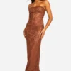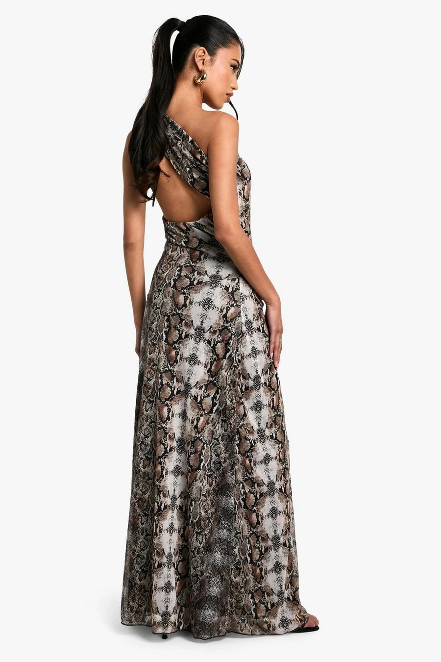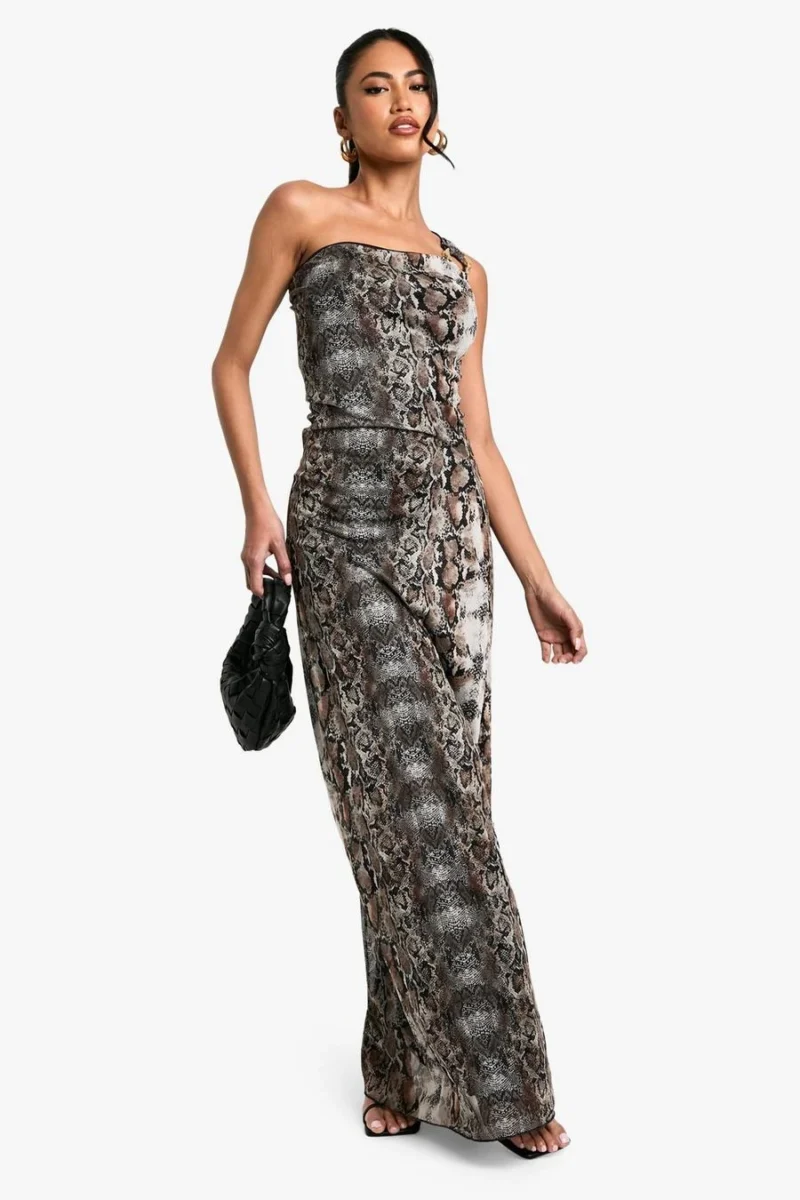 BOOHOO Snake Print Gold Trim Maxi Dress